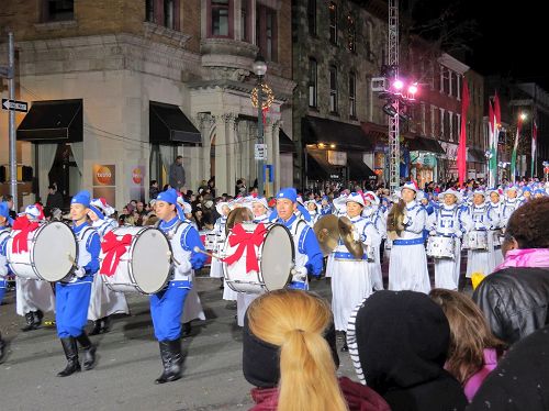 在法轮功的方阵里,有来自华盛顿特区的学员们组成的腰鼓队,另外,天国乐团也受邀出席,受到主办方和沿途民众的欢迎。活动主办方负责人尤德说,他感谢法轮功学员的腰鼓队多年来一直在参加该游行。他表示法轮功学员的表演十分出色,把亚裔文化带给了附近的社区与居民,他非常喜欢。他表示,很高兴今年法轮功天国乐团也来参加圣诞游行,让当地民众都能一睹乐团的风采。