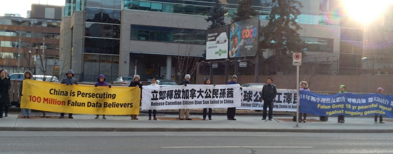 孙茜女士是加拿大公民,因修炼法轮功,被非法关押在北京已长达九个月。卡城居民黄金玲女士的修炼法轮功的女儿陈英华于二零一五年被非法判刑四年,现仍然被非法关押在河北省女子监狱;卡城另一位居民蒋宝莲女士的表妹左丽,于二零一四年被秘密非法判五年监禁,目前仍被非法关押在陕西女子监狱。