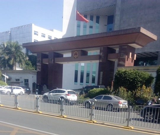 十二月一日,龙岗区法院门前戒备森严、如临大敌,几十个黑衣警察、特警和一些警车守在门前,便衣在三叉路口和周围死死地盯人,寻找法轮功学员,进入法院大门的安检比上飞机还严,法院里会见室的来访者都惊诧地问,今天有什么大案开庭?
