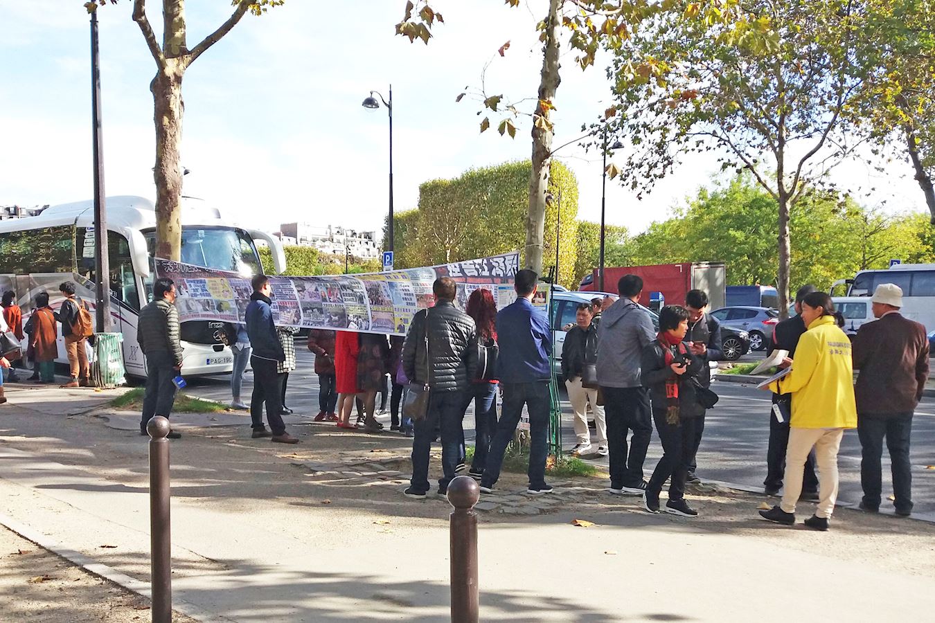 ![]() 游客在巴黎埃菲尔铁塔旁的法轮功真相点认真观看“揭露中共迫害法轮功罪行”的真相展板。 |
