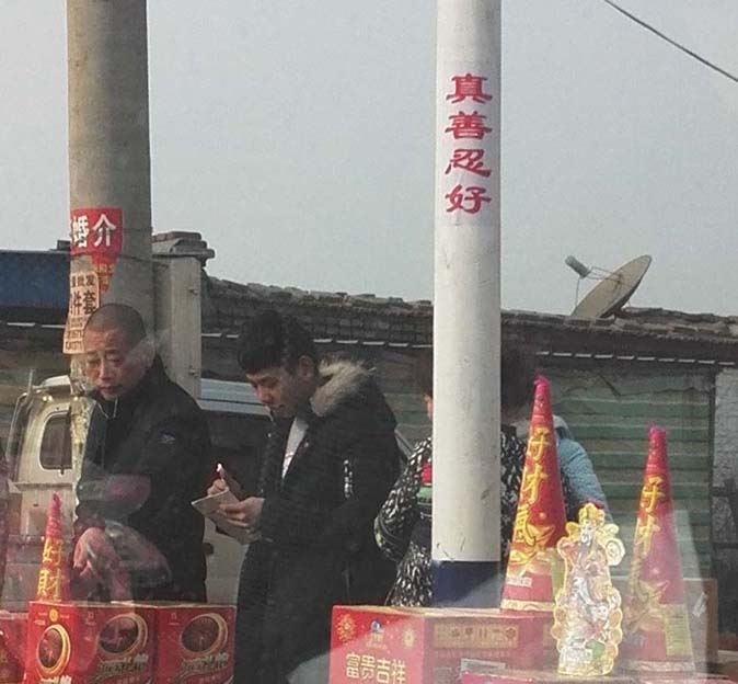 二零一七年一月二十六日,腊月二十九,在石家庄市区张贴的真相展板及“法轮大法好”、“真、善、忍好”、“退!党!团队保平安”等粘贴,向忙碌着准备过年的世人表达了大法弟子的美好祝福,及抛弃恶党,迎接新世纪的真诚祝愿。