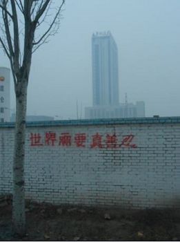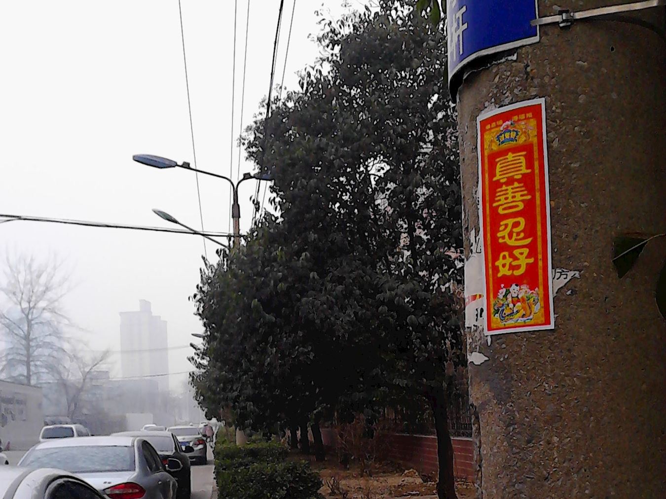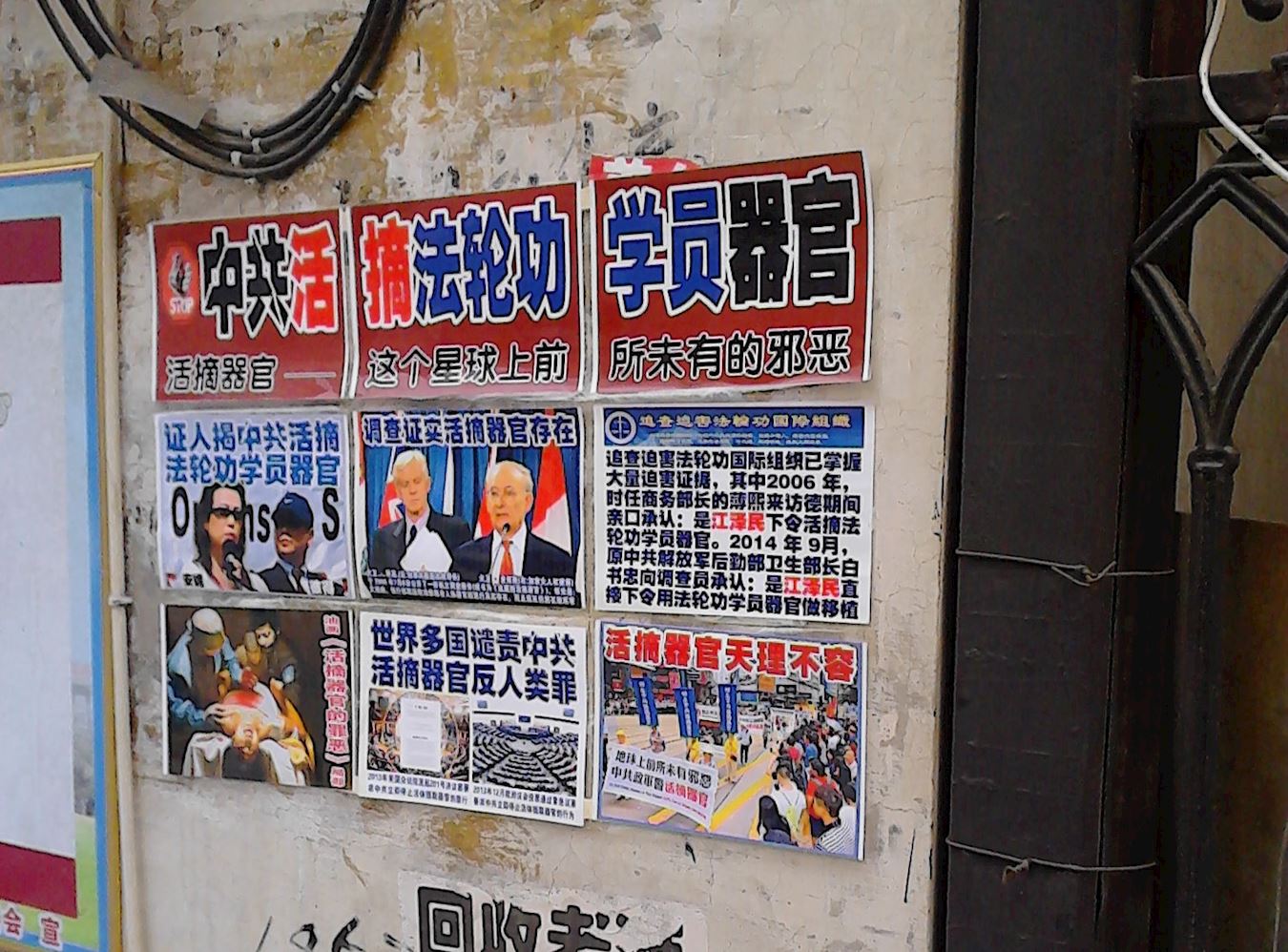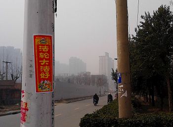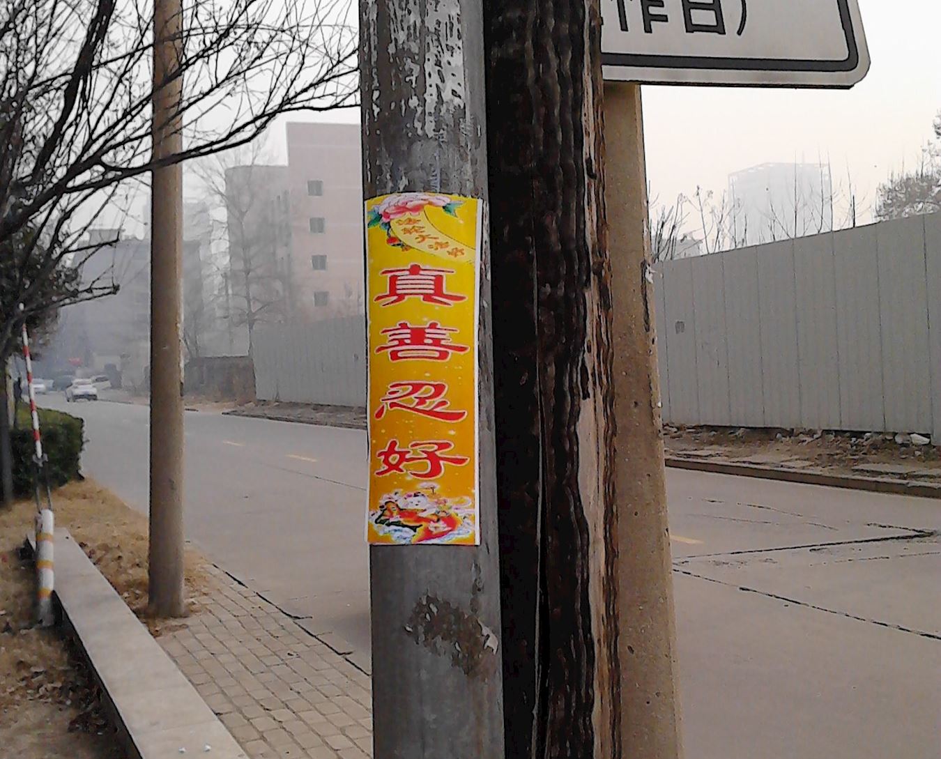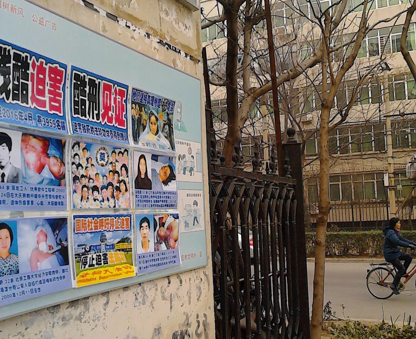 新年期间石家庄市区张贴的真相展板及粘贴