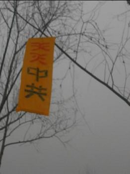 河北唐山地区出现的真相展板和标语