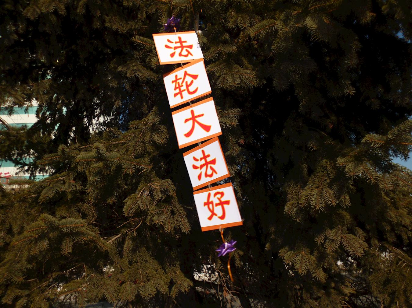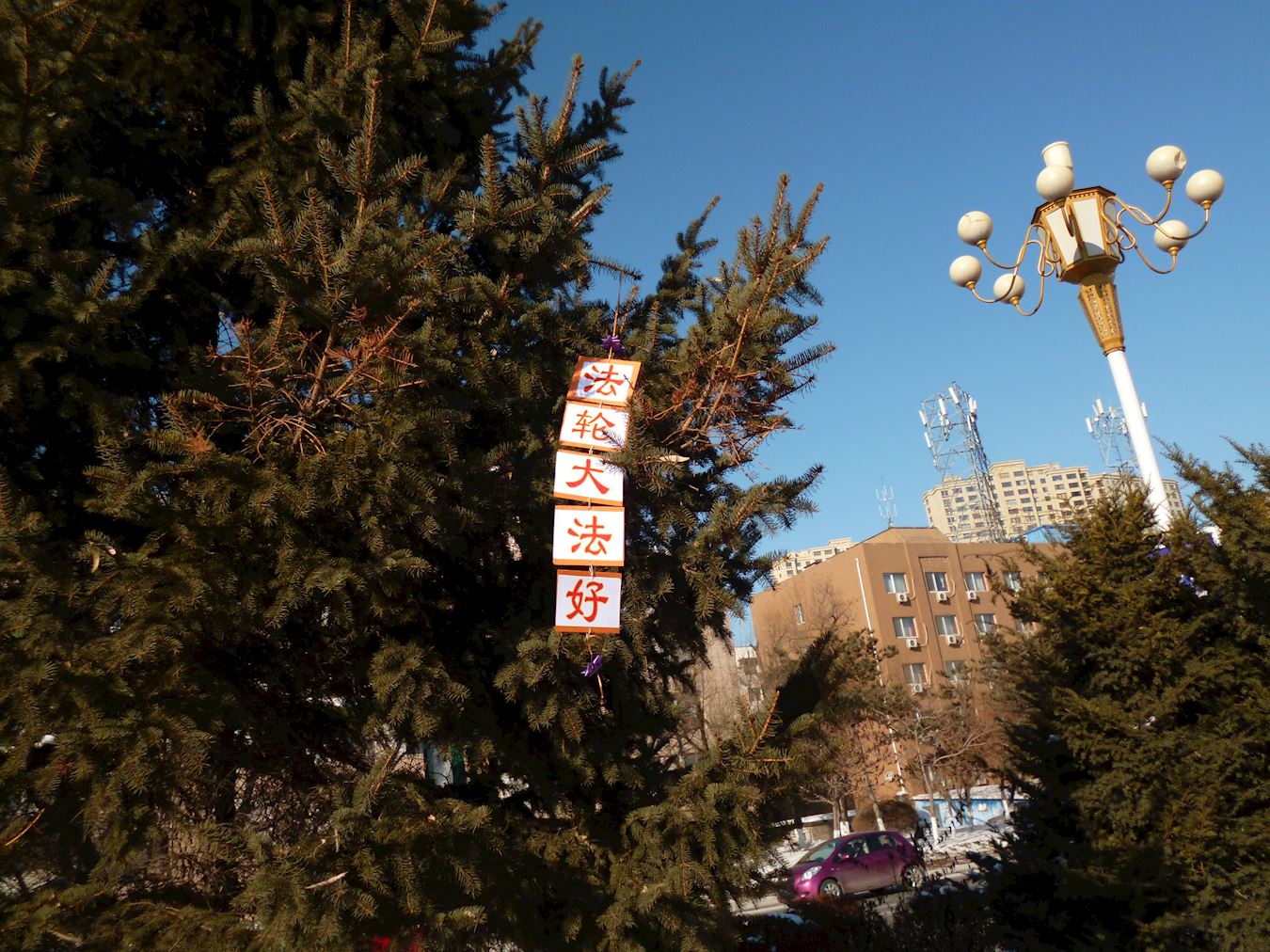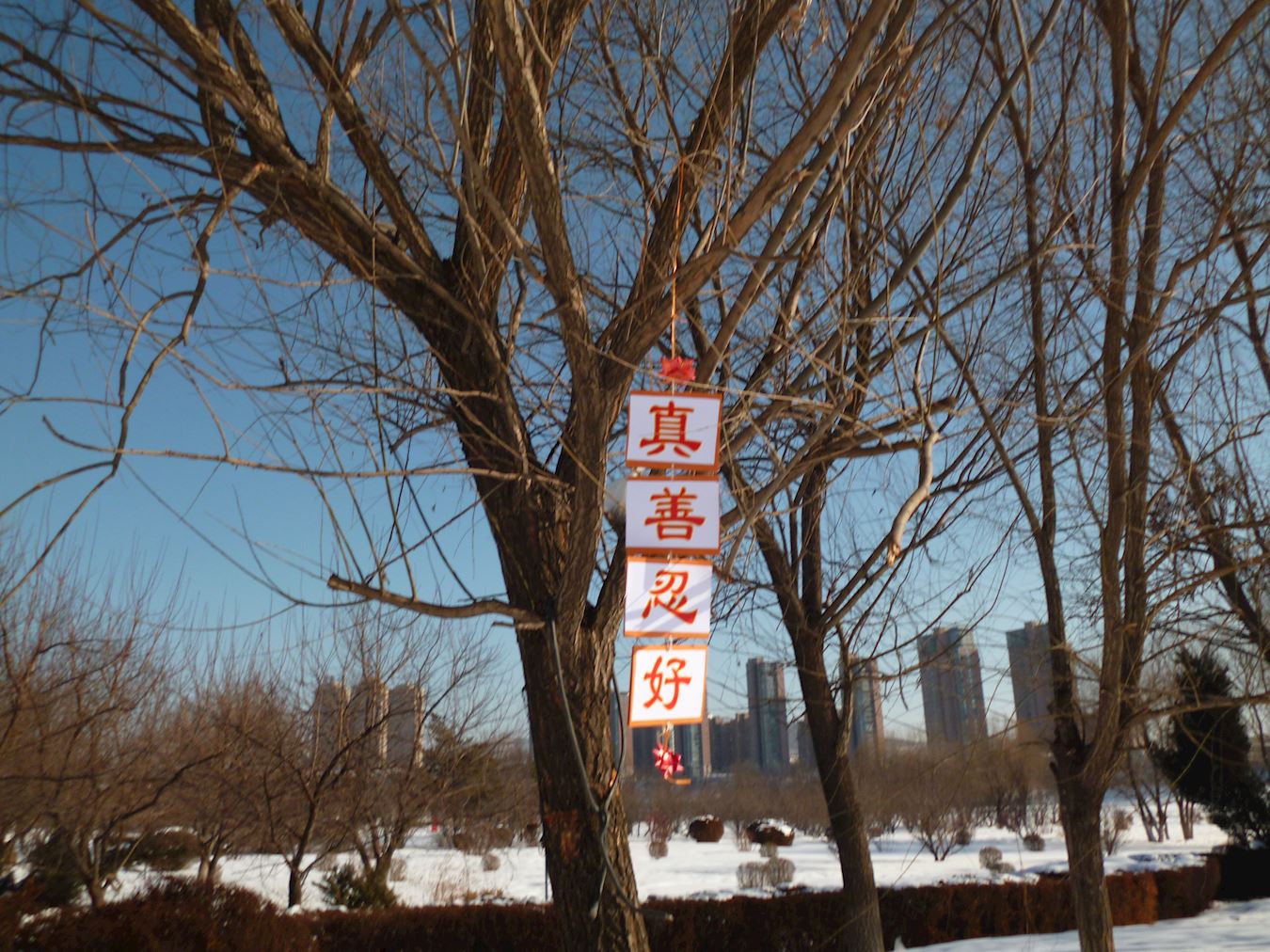 • 新年期间吉林市市区的树挂、粘帖传递“大法好”