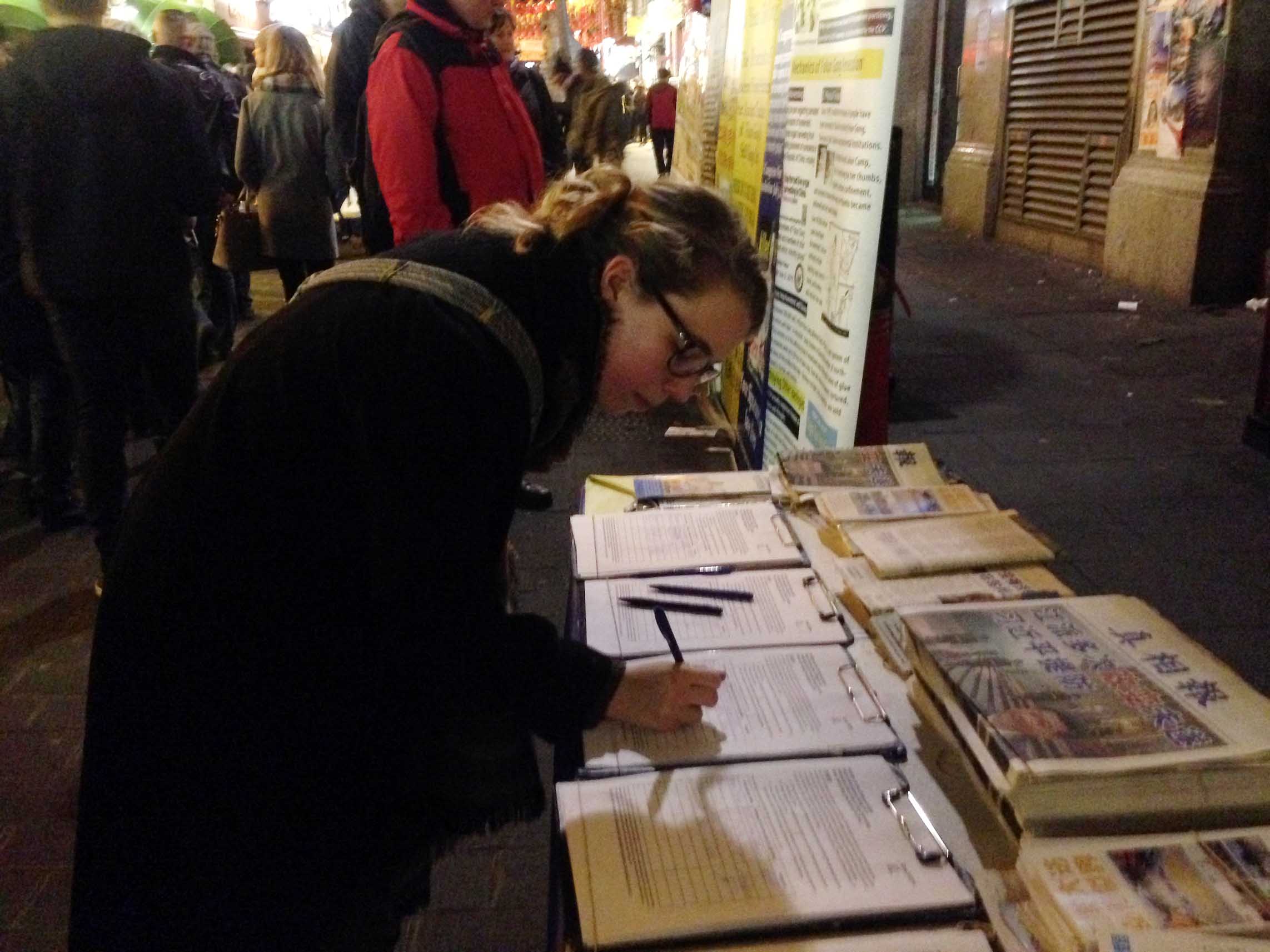 来唐人街过生日的英国女士:签名为制止暴行添一份力量
