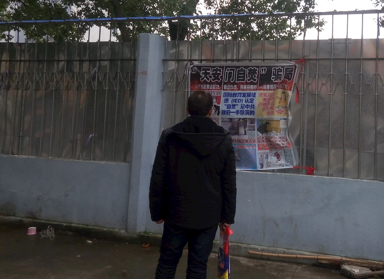 湖北麻城民众过年看真相展板