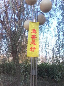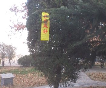 • 邯郸市峰峰矿区大法弟子在新年前悬挂的真相条幅(树挂)