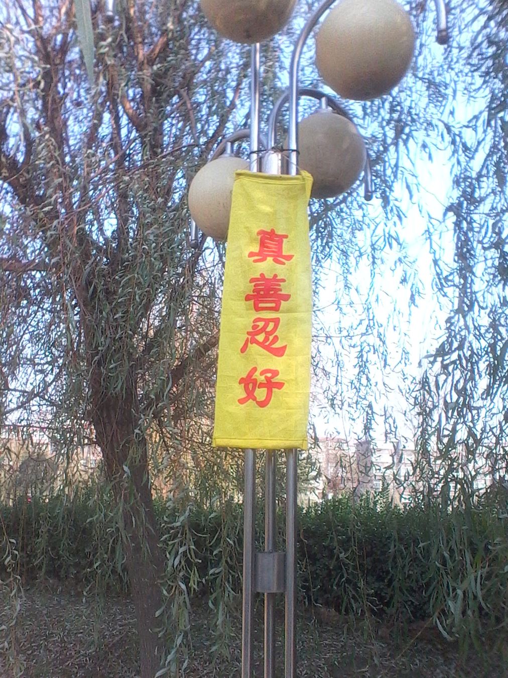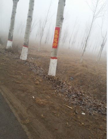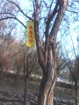 邯郸市峰峰矿区大法弟子在新年前悬挂的真相条幅(树挂)