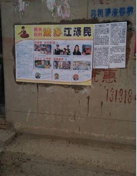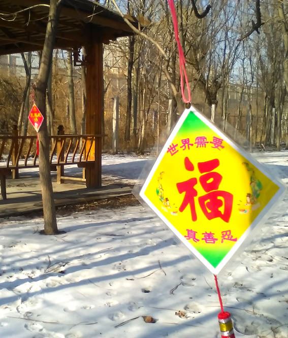 【明慧网二零一七年二月二十一日】(明慧网通讯员大陆报道)丁酉年正月,在大陆各地,法轮功学员们通过悬挂海报、条幅和树挂,将“法轮大法好”、“真善忍好”传递给当地百姓。也通过图文并茂的海报、展板将法轮大法洪传世界的信息以及控告、起诉迫害法轮功的元凶江泽民的信息告知人们。