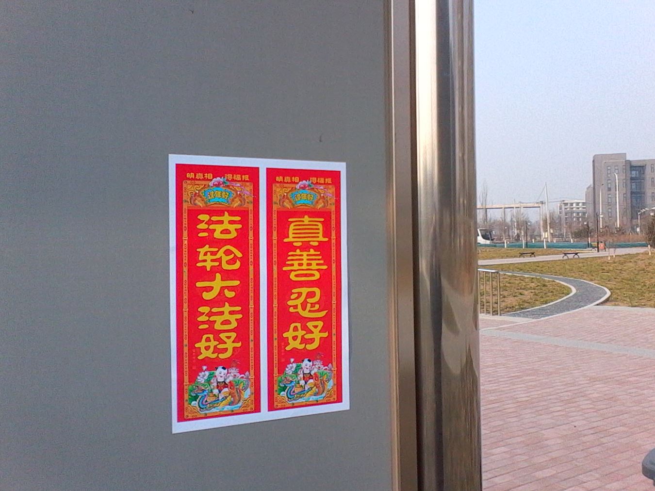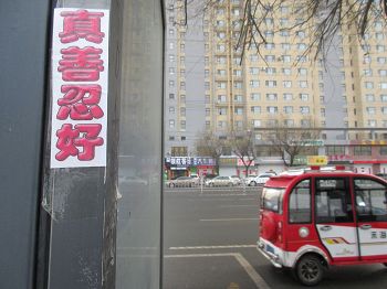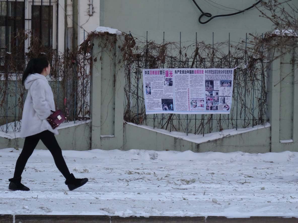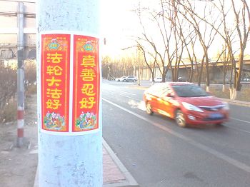 • 新年正月初一在山东省东营市街头、公交车站、小区出现的真相展板