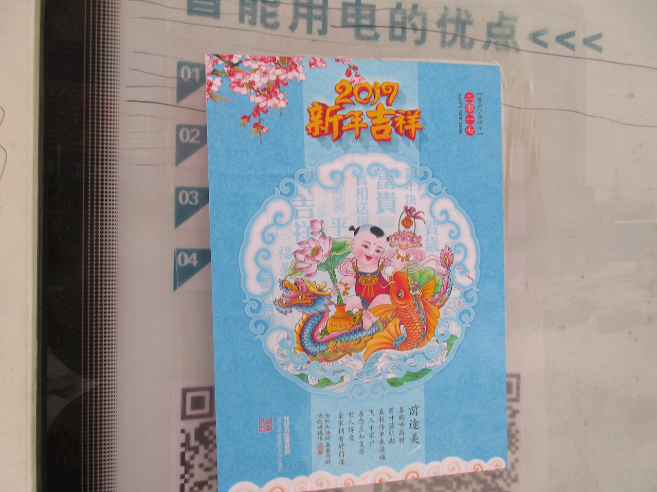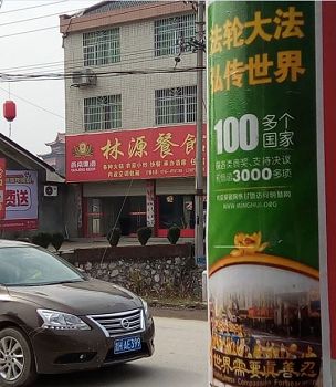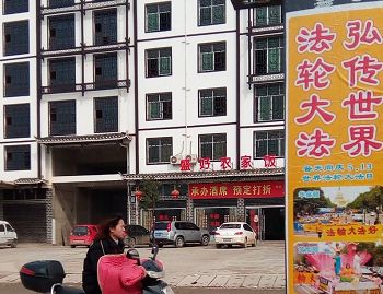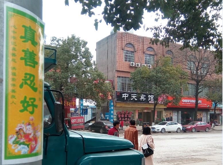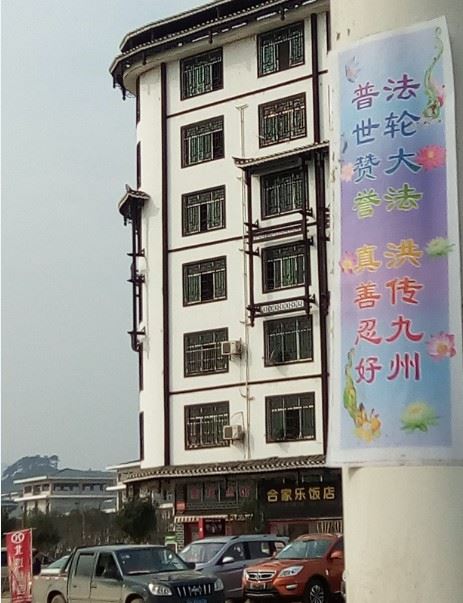 湖南省怀化市靖州县过年期间的真相粘贴和海报。新年吉祥,法轮大法的美好传遍全城。