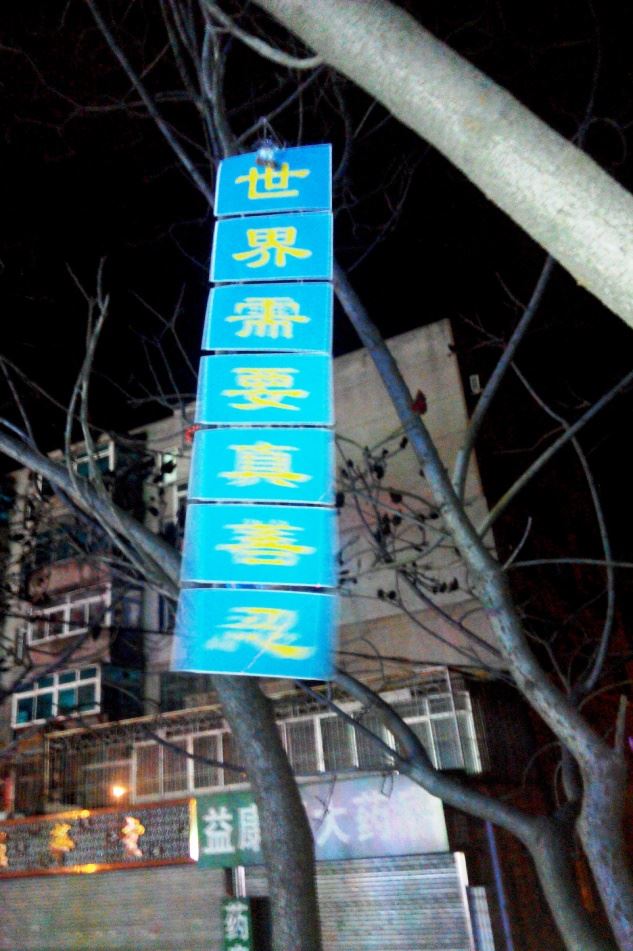 大年初一晚在辽阳市街道的真相条幅