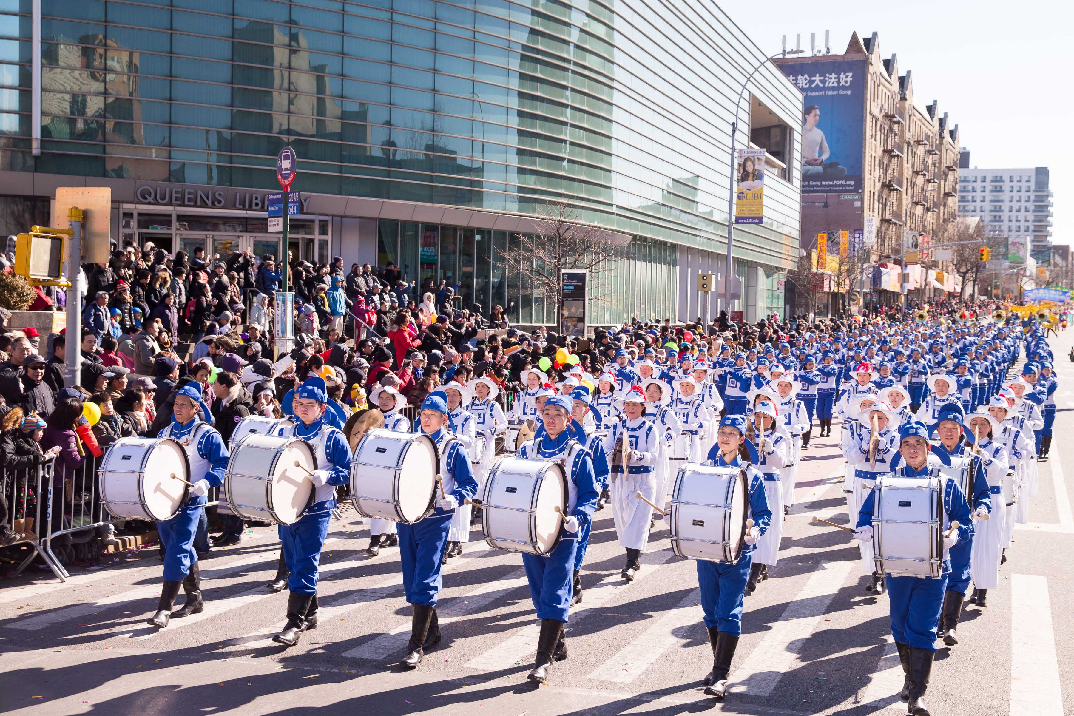 ![]() 图1-12:二零一七年二月四日,纽约法轮功学员参加了法拉盛一年一度的“纽约华人新年大游行”,队伍壮观、丰富多彩,富传统的中国人过年的年味,给当地民众带来“法轮大法”和“真善忍”的美好。 |