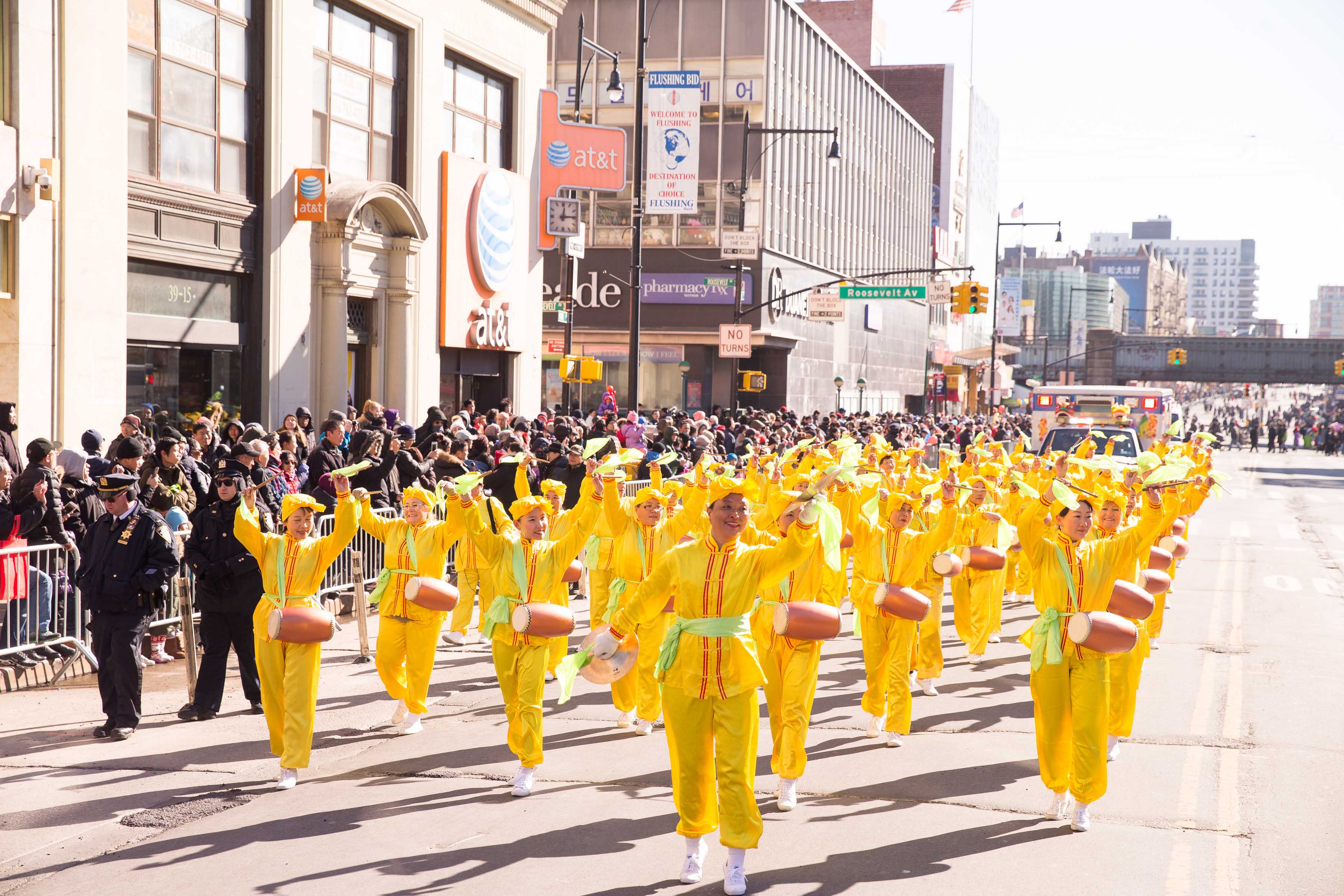 五百人的法轮功队伍浩浩荡荡,五彩缤纷,充满了活力与喜庆,给法拉盛带去了满满的正能量。所到之处,民众纷纷举起手机,拍照留念。人们向法轮功方阵招手致意,竖大拇指,有人向游行队伍大声喊“法轮大法好”。