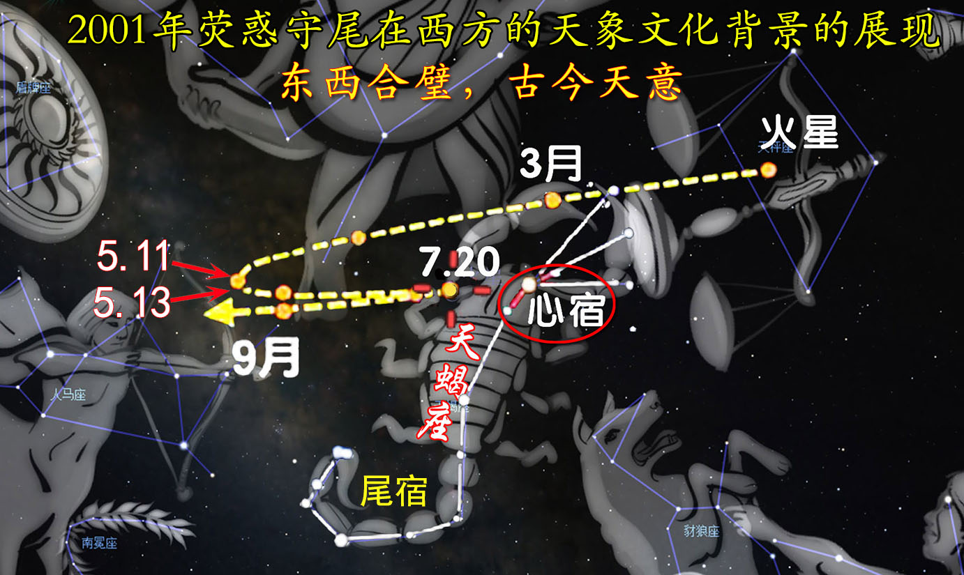 图:2001年火星轨迹“荧惑守尾”在西方天象文化背景的展现