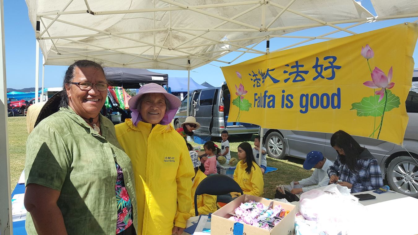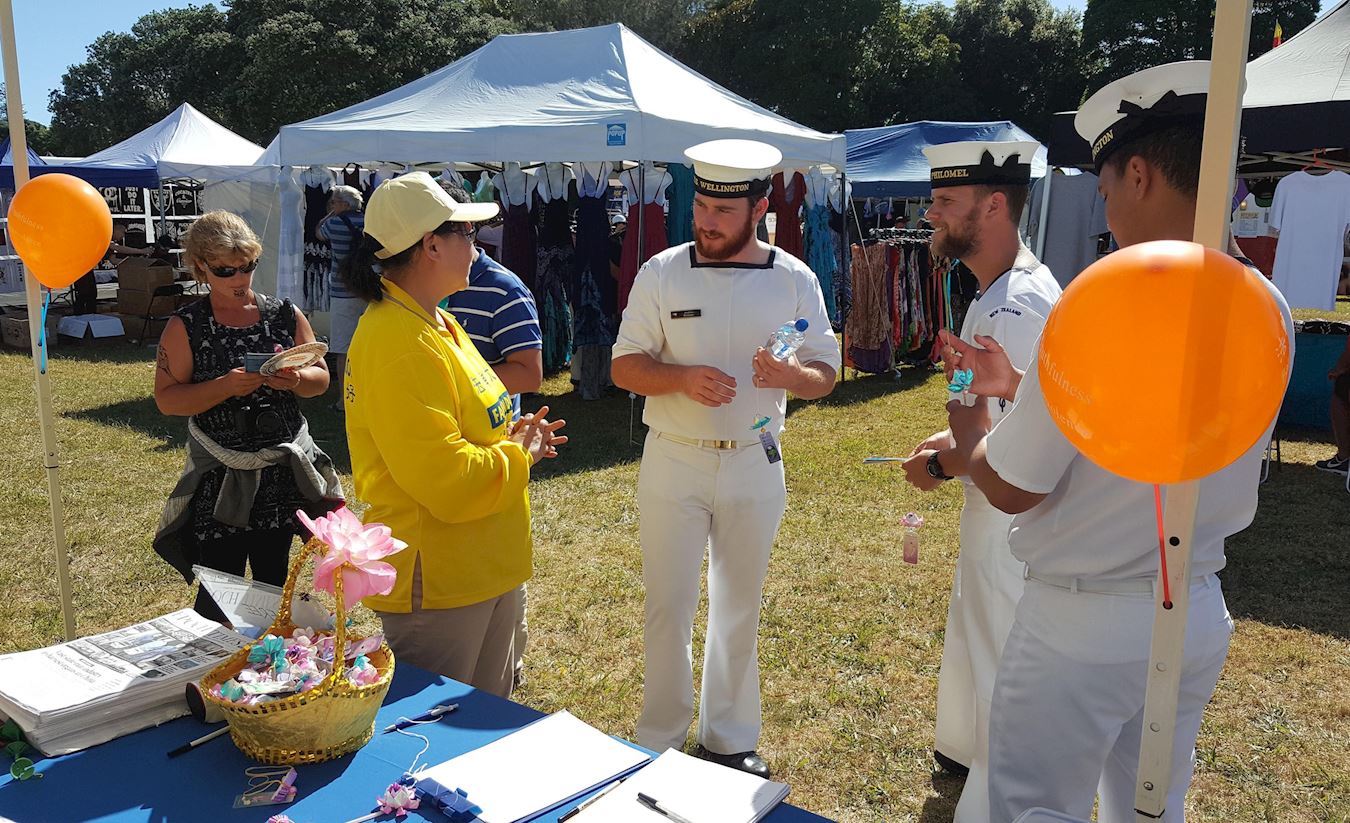 新西兰北岛的法轮功学员也参加了今年为期两天的活动,在展位上他们展示功法,向人们讲述什么是法轮大法,法轮功学员在中国受到的残酷迫害,以及还在发生的被活摘器官。