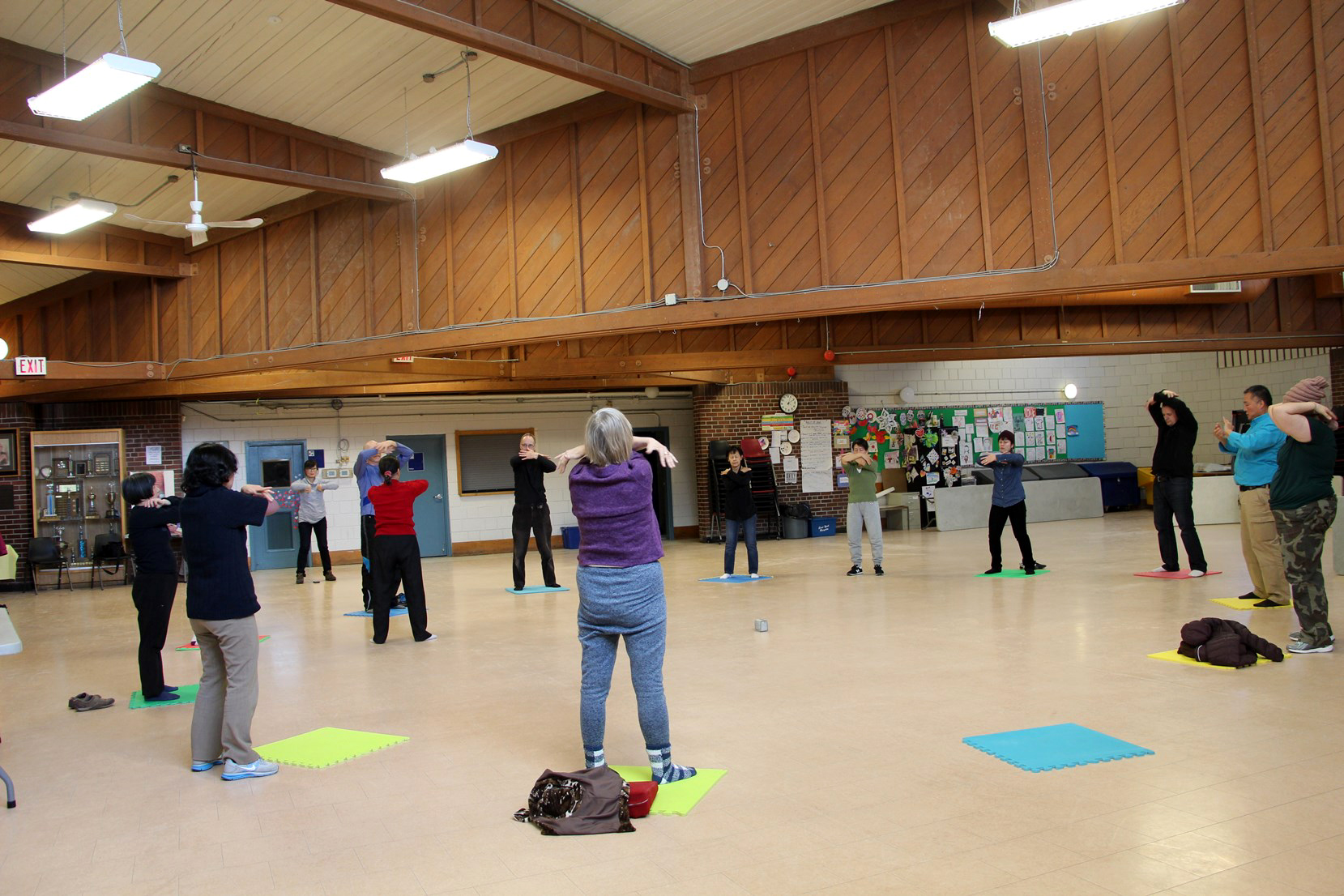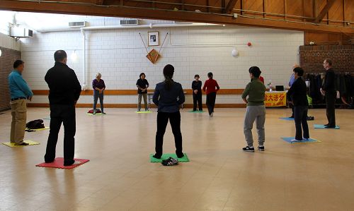 ![]() 图1-2,法轮功学员在多伦多的社区中心Stan Wadlow clubhouse 举办免费教功和集体炼功活动。 |