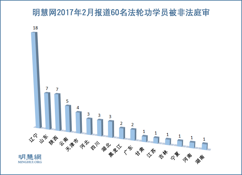 二、明慧网二月份报道60名法轮功学员被非法庭审