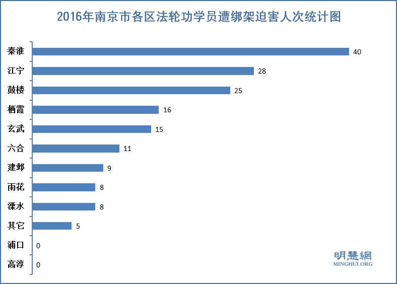![]() 图2. 2016年南京市各区法轮功学员遭绑架、强制采血人次统计图 |