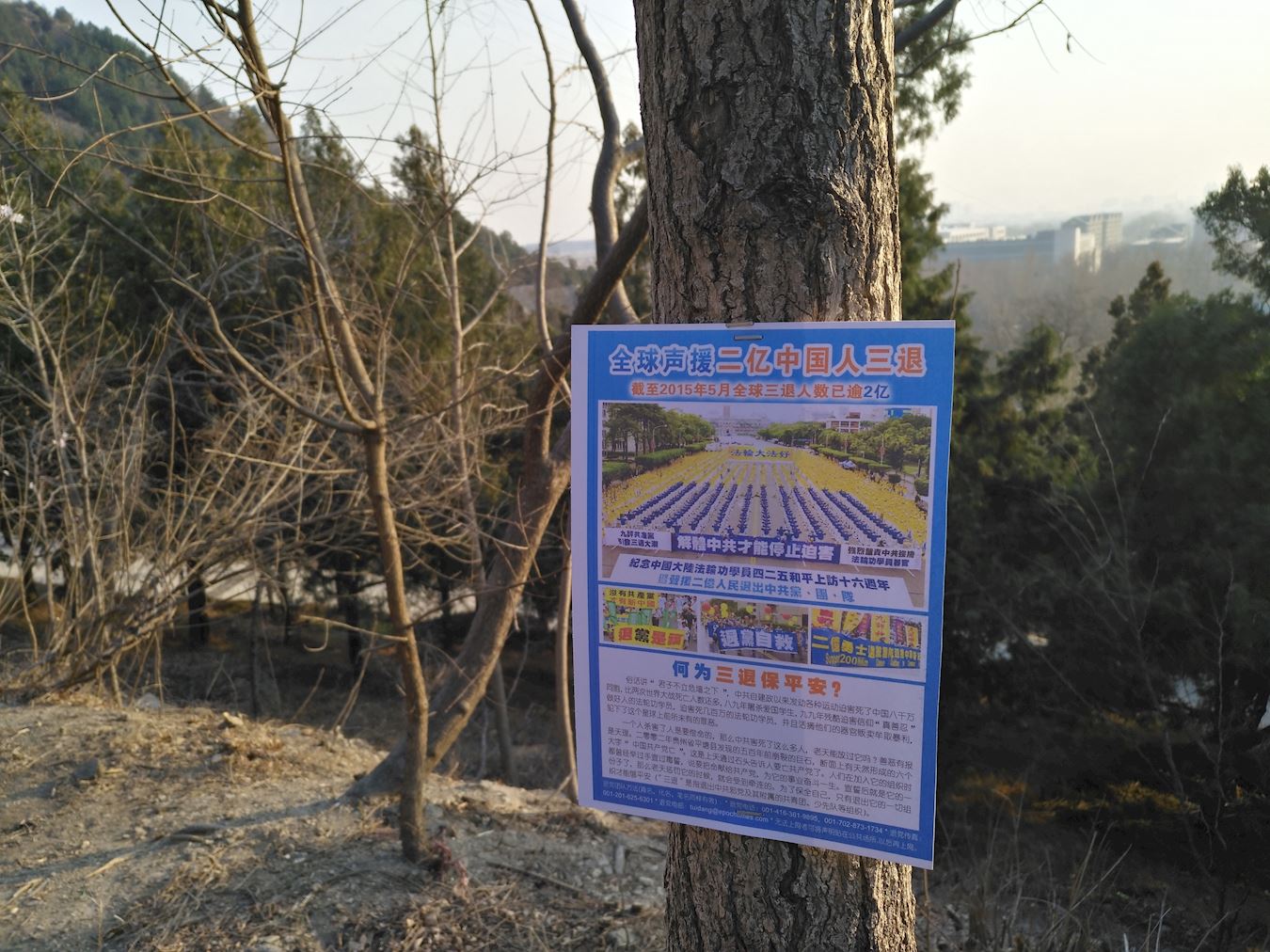 在北京百旺山森林公园里的大法真相信息