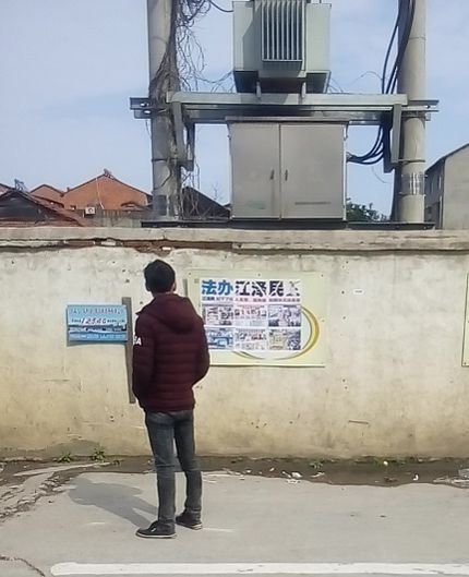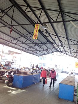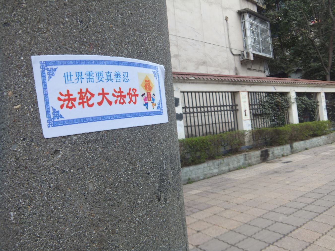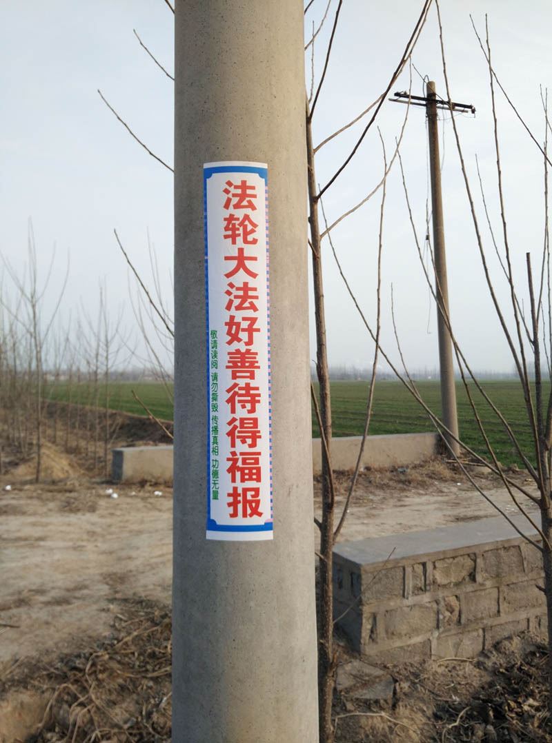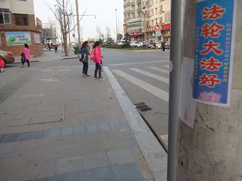大陆多地街头展板、标语传递“法轮大法好”(图)