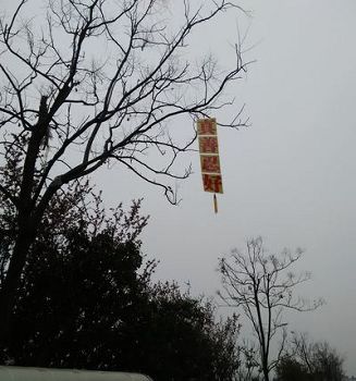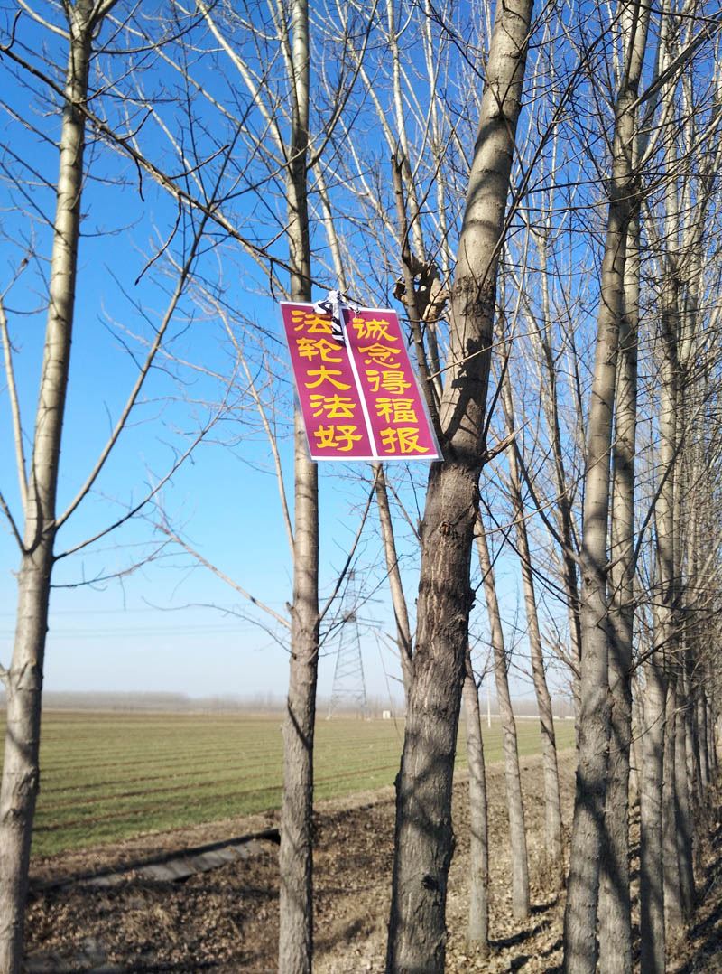 条幅树挂传递真善忍的信息