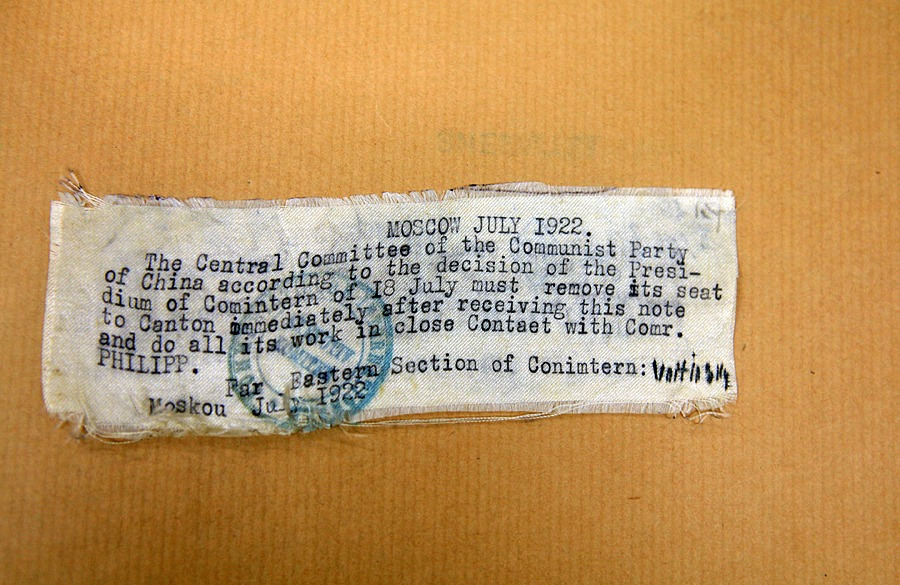 这个荷兰人的中国名字叫马林,这条密令被全文打印在一块白色绸缎上,缝在马林的衬衫里带给中共。这块白色绸缎今天陈列在荷兰的国际社会历史研究所。
