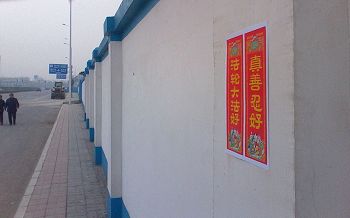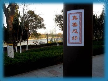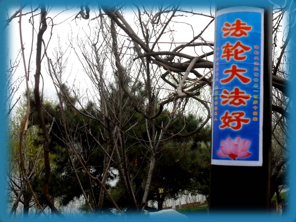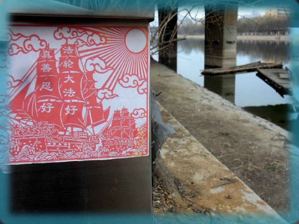 位于山东东部地区,2017年新年后的初春,这河边上救度众生的“法轮大法好 真善忍好”法船图标,时至今日依然如初,饱经着初春的寒意、初春的蒙蒙细雨、初春的风吹日晒、伴随着这春暖花开,风雨同舟、依然如初,初心不衰。