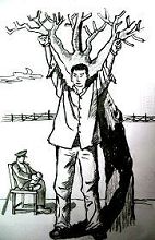 4.吊挂——把人吊挂在屋顶,多时不放,或吊铐在院外大树上,夏天蚊虫叮咬、冬天忍受着寒冷。长者近百小时。身体所吊之处,撕裂般疼痛,血压急剧升高,人逐渐昏迷。解下后,全身酸痛、麻木,生活难以自理。