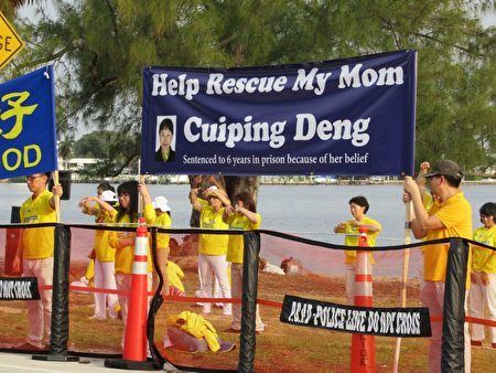来自佛州的法轮功学员鲁苑青,她的母亲邓翠苹去年因为发放法轮功的真相资料而被捕,被关押在云南省玉溪市红塔区看守所至今。在川习会期间,鲁苑青也特地从佛罗里达州西海岸的坦帕赶到棕榈滩参加和平抗议,为她的母亲邓翠苹请愿。数家美国媒体对她进行了采访报道,其中包括佛州发行量最大、曾获十二个普利策奖的坦帕湾时报(Tampa Bay Times)。