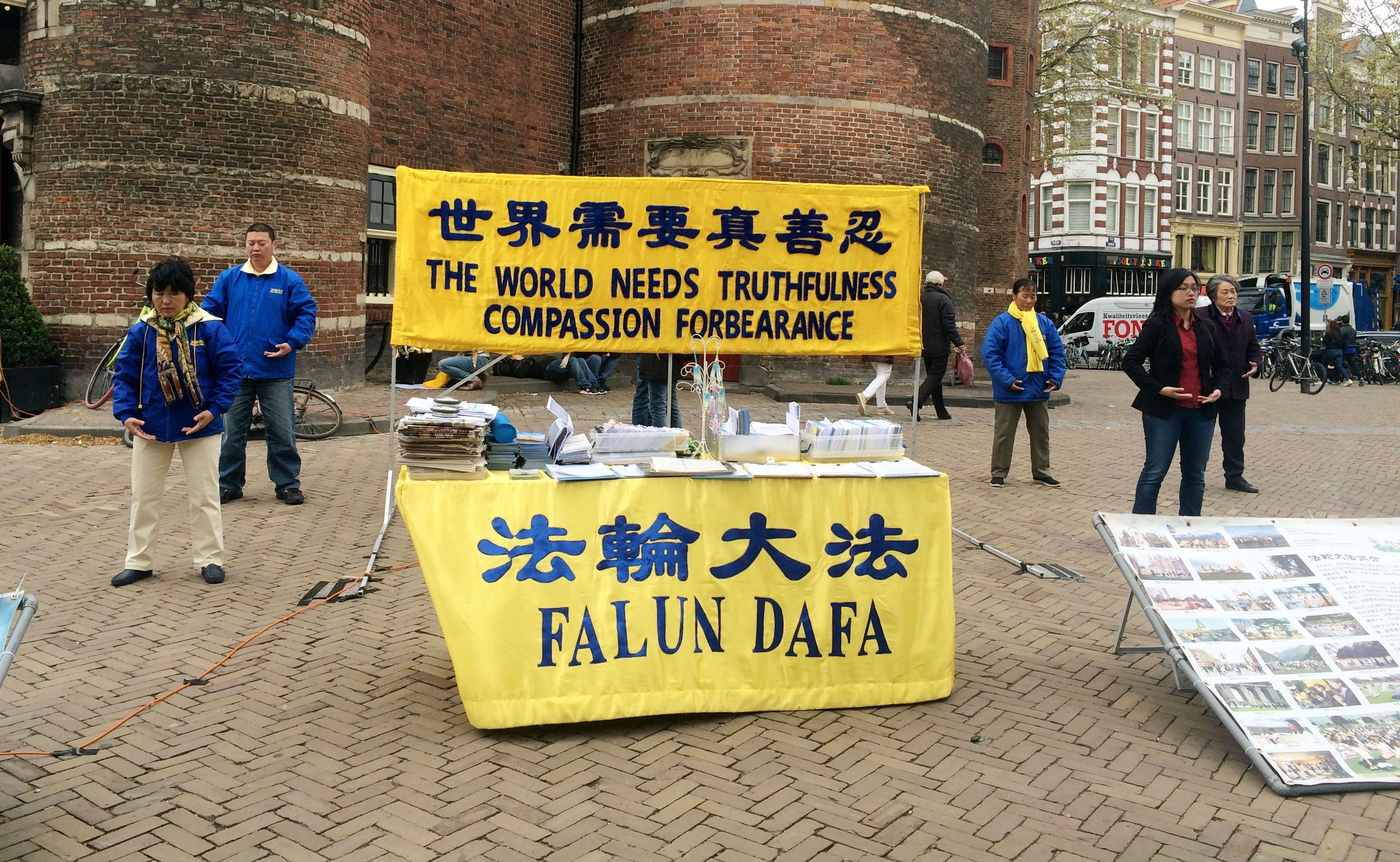 ![]() 在荷兰阿姆斯特丹唐人街,路人驻足听法轮功学员讲真相 |