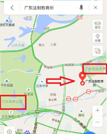 三水洗脑班二零零三年四月正式独立挂牌,升格为“广东省法制教育所”,迁址于三水西南街道同福北路23号(解体前的广东省女子劳教所位于三水西南街道同福北路28号,和三水洗脑班相邻,在三水洗脑班楼房可以看到省女子劳教所和荷花世界)。