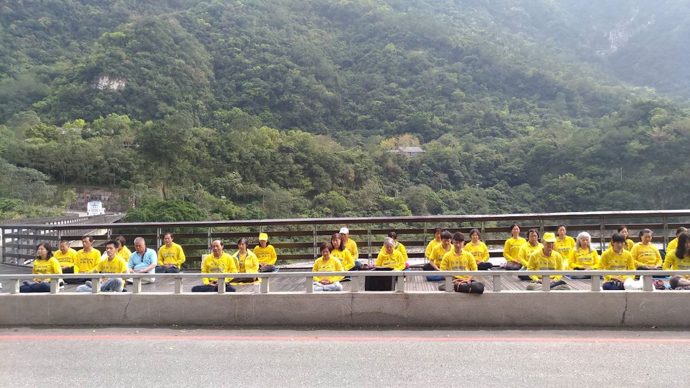 ![]() 图1:花莲法轮功学员在秀林乡太鲁阁国家公园前炼功 |