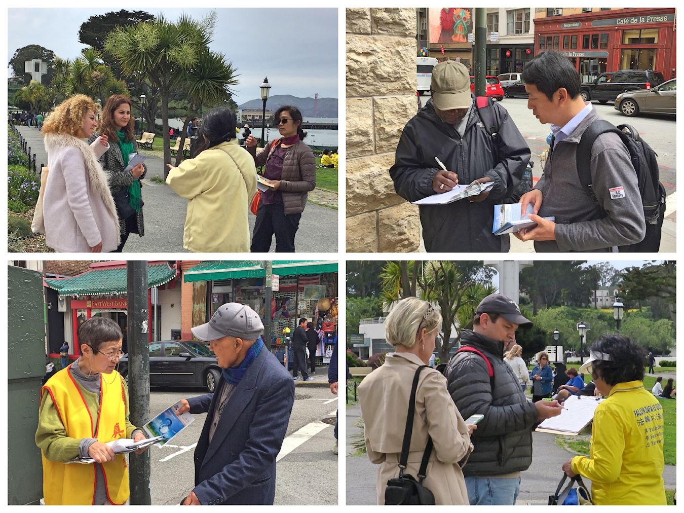 ![]() 图7~8:二零一七年四月二十二日和二十三日,旧金山湾区的法轮功学员在旧金山的中国城和多个公园和旅游景点,向当地民众和游客讲述法轮功的真相。 |