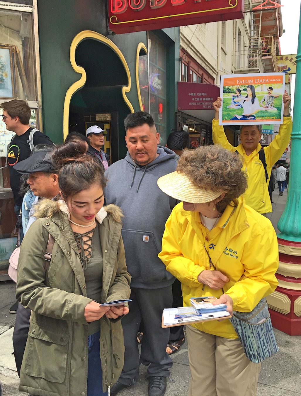 在美国出生长大的琳达·坎贝尔(Linda Campbell)是一位理疗师。这两天,她都来到了旧金山中国城告诉人们修炼大法的美好,以及中共迫害法轮功的真相。