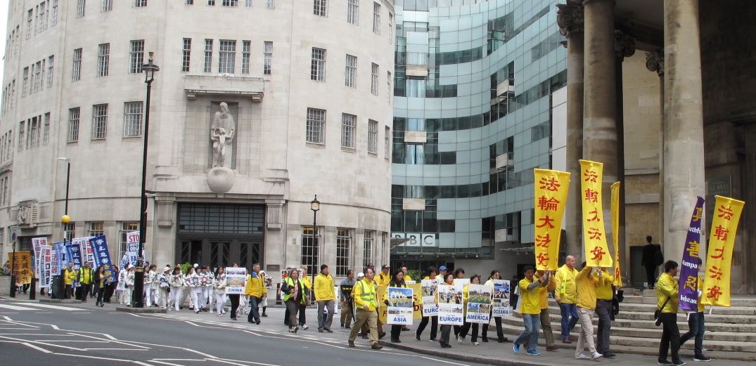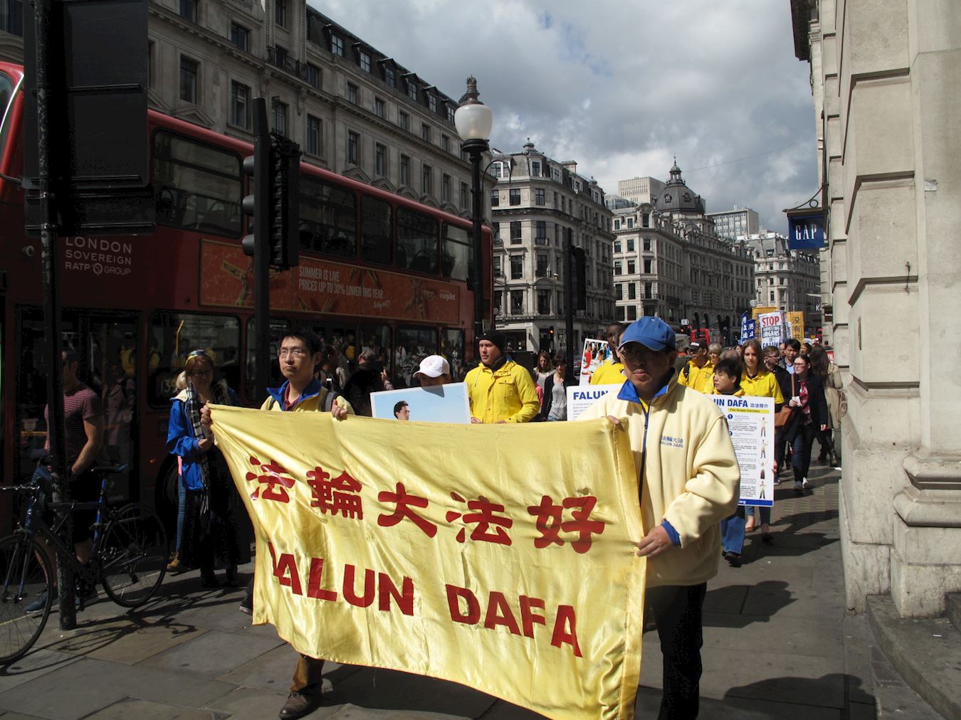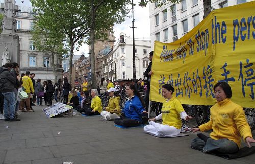 伦敦中使馆前,法轮功学员集会要求立即停止迫害