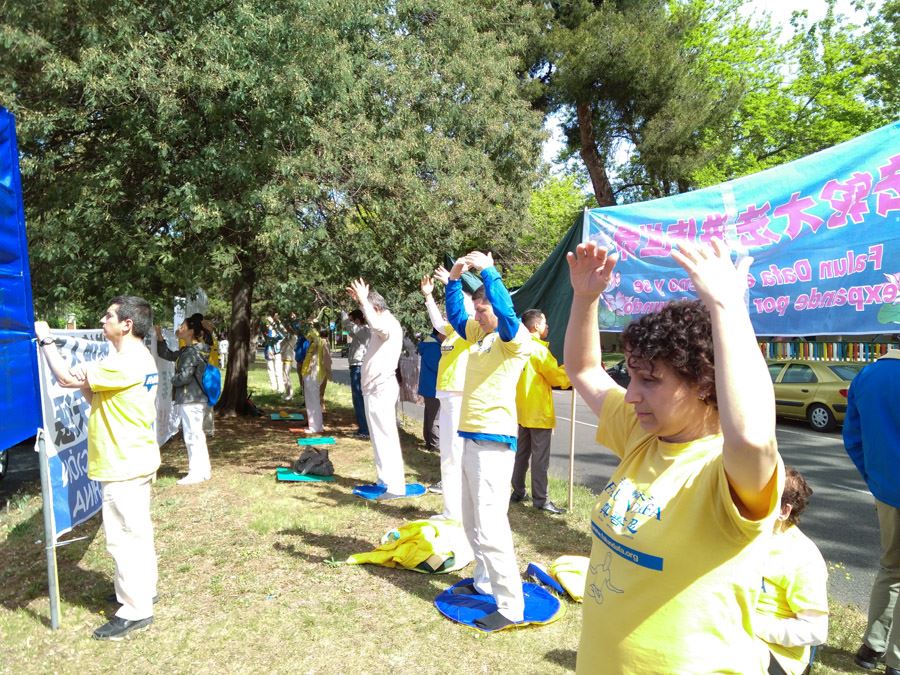 西班牙法轮功学员纪念四二五和平上访18周年(图)