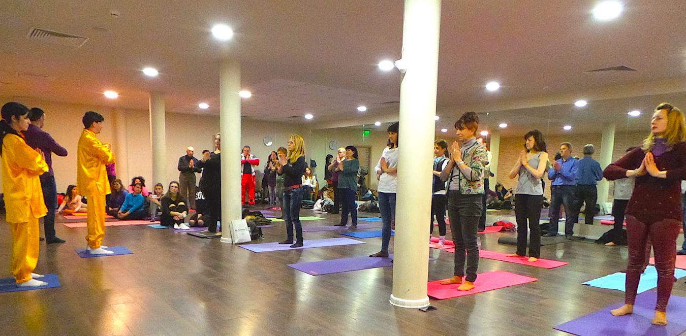 四月九日保加利亚的法轮功学员参加了在Plovdiv市举办的“你好健康”第八届博览会,学员们在“鲍里斯·克里斯托夫”文化大厅里举办了法轮功讲座,介绍法轮功是中国传统修炼大法,以“真、善、忍”为指导原则,修炼法轮功不仅会得到健康的身体,还让人提高道德质量,在精神层面得到升华。演示功法的学员身着黄色炼功传统服装现场传授了一至五套功法,来了二十多位想了解学炼法轮功,其中大部份都很感兴趣的在学炼。