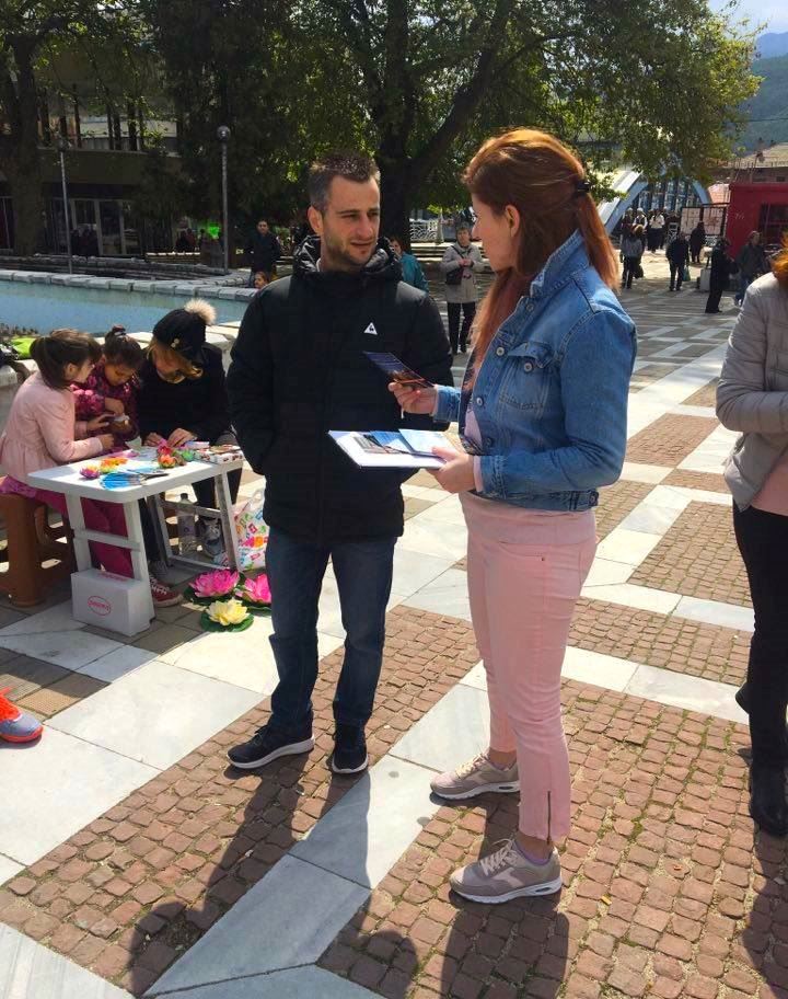 ![]() 图6:4月22日Peshtera市的学员在讲真相征签反迫害 |