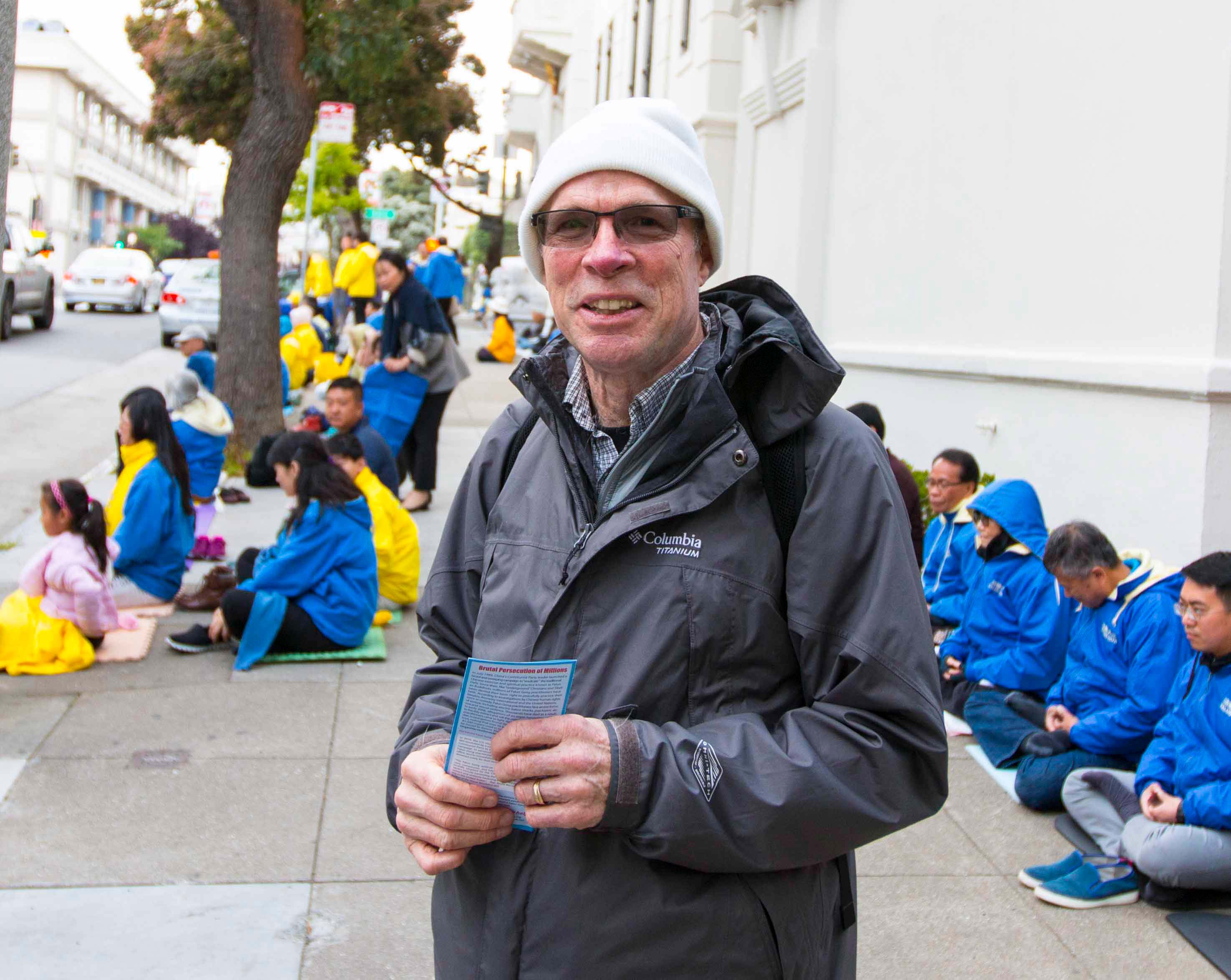 住在领馆附近的居民Robert Levering表示,他经常看到法轮功学员在中领馆前请愿。他说:“我经常看到法轮功学员,他们非常平和,法轮功学员做的非常好。中共对法轮功的迫害非常邪恶,中共迫害信仰真、善、忍的人,这是恐怖的行径。”