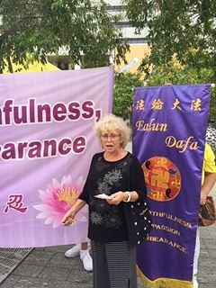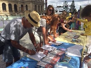 当天,学员们在广场上拉起横幅,摆出真相展板及信息台,向络绎不绝的行人 来自南澳首府阿得雷德市的玛丽娅(Marja-Liisa)女士说:我在伦敦时就看到法轮功学员每天二十四小时在中共使馆前静坐、炼功,我非常钦佩法轮功。我强烈反对中共当局对法轮功的迫害,特别是活摘他们的器官,这些罪行必须被制止。 托妮(Toni)女士是当地居民,她了解真相后说:“这场迫害根本就不应该发生。你们告诉大家事实真相很重要,国际社会应该一起制止迫害。正义必胜!我为法轮功祝福。” 祖籍印度的麦克斯(Max)和家人看过真相展板后说:“每个人都有生存的权利。这场迫害是完全违法的。我全力支持反迫害,还要告诉我认识的所有人来支持法轮功。这场迫害必须停止!” 布里斯本居民丹妮尔(Denielle)和好友菲丽希缇(Felicity)了解真相后也纷纷表示支持法轮功反迫害。丹妮尔说:“我们支持法轮功,强烈谴责中国政府活摘器官的罪行。” 菲丽希缇接着说道:“我认为每个人都应有信仰自由。捐献器官必须是自愿的,任何违反本人意愿强行摘取器官都是令人无法容忍的罪行。我们希望迫害早日结束。” 在澳洲居住了九年的英裔女士杰西卡(Jessica)女士也表示:迫害必须停止,活摘器官天理不容!