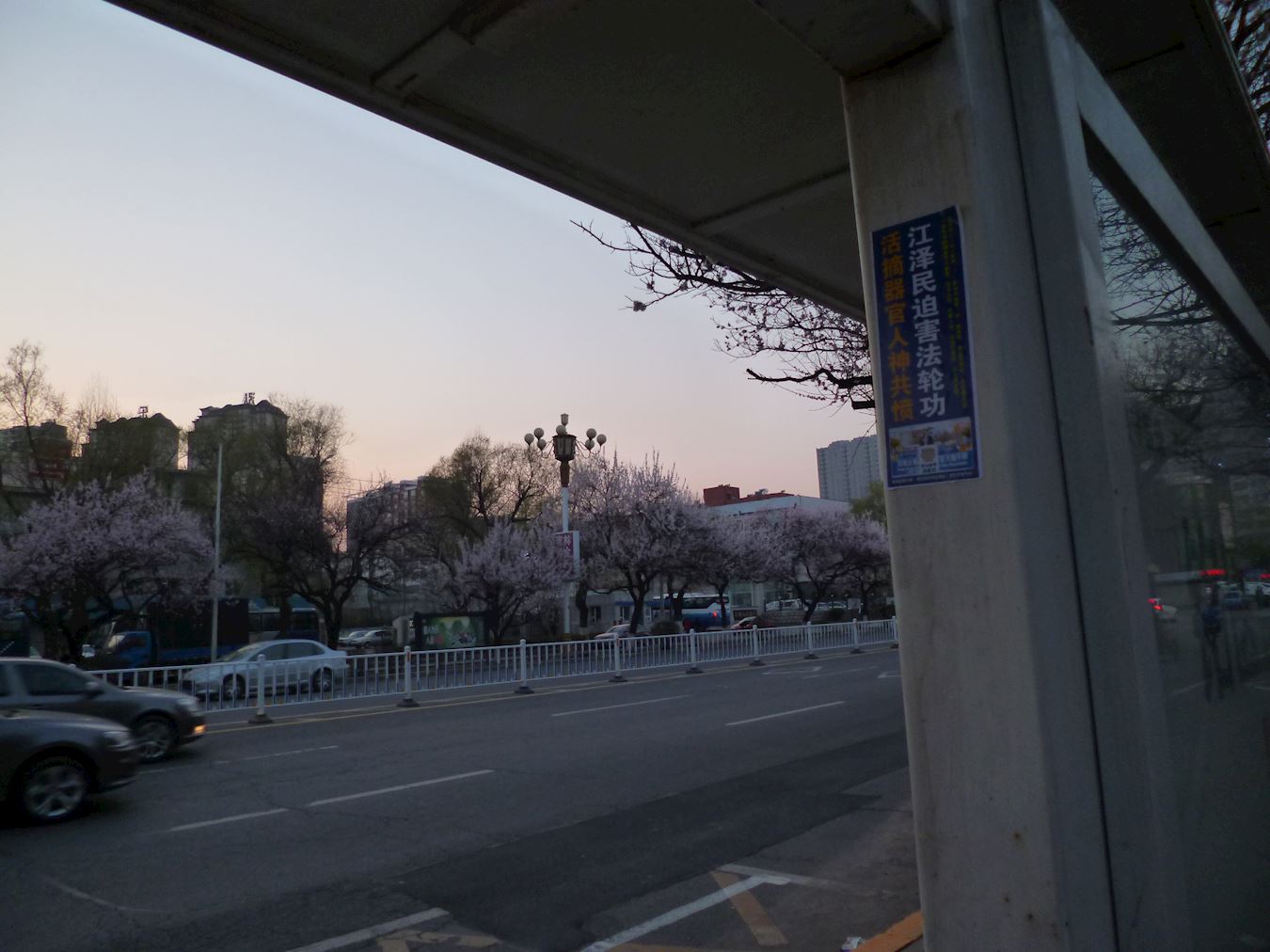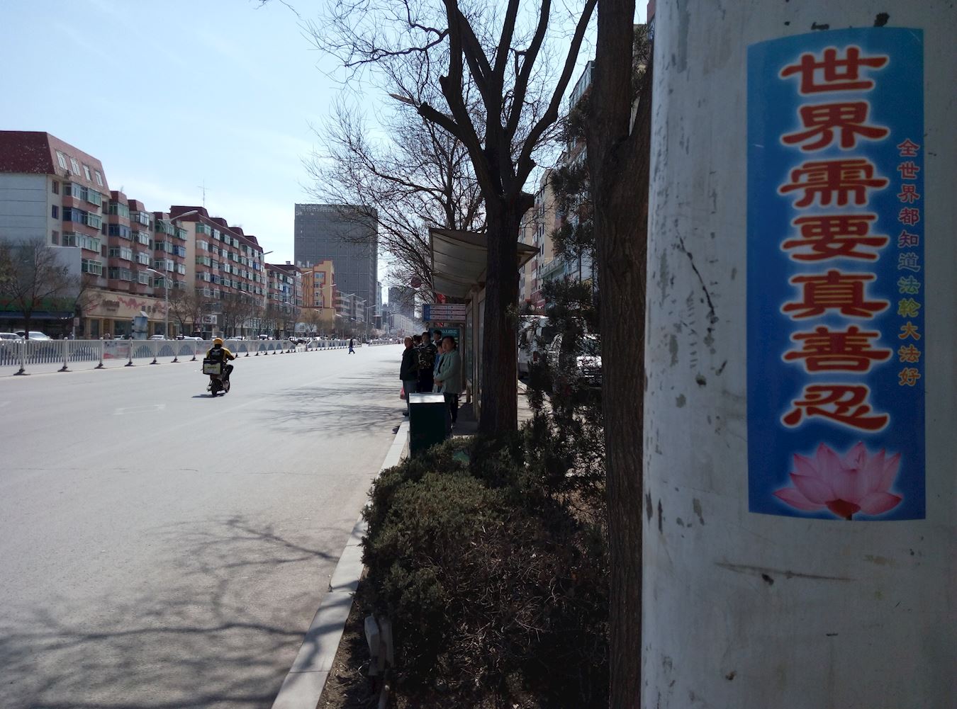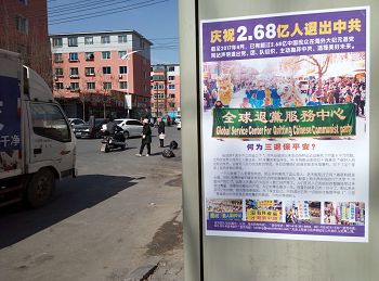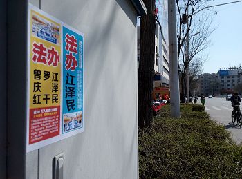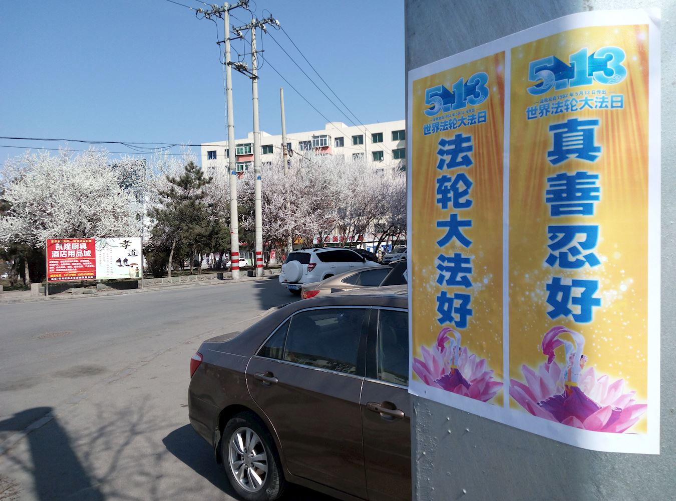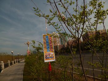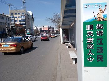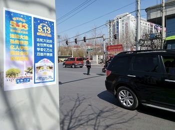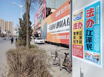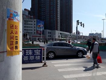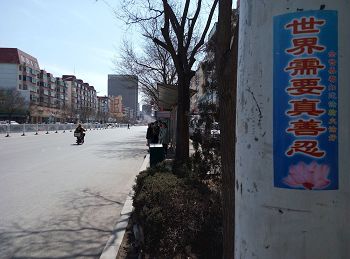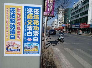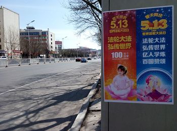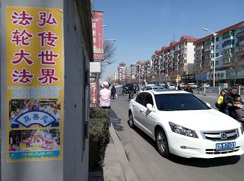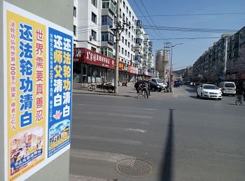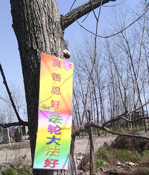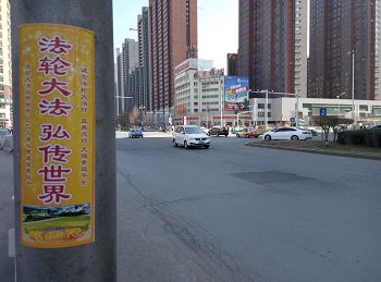 四月的铁岭桃树已经开花,柳树也刚刚发芽。“法轮大法好”“真善忍好”粘贴及“法轮大法”洪传世界和“513”大法日,三:退.保平安,法办江泽民,还法轮功清白等信息在铁岭的大街小巷广泛传播。