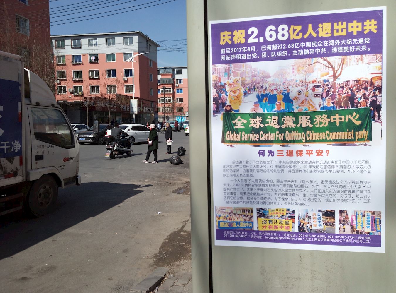“法轮大法好”的信息在辽宁铁岭的大街小巷广泛传播