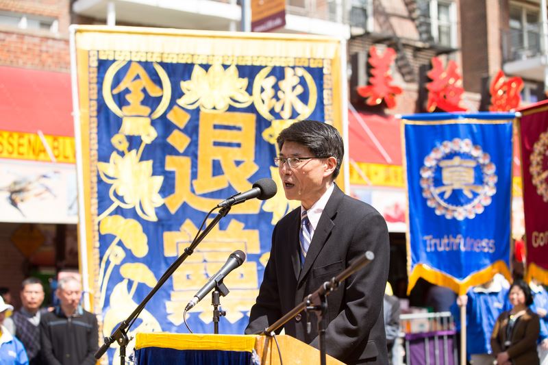 集会上,法轮大法信息中心、全球.退:党!服务中心、追查迫害法轮功国际组织的负责人,以及时政评论家、社会团体负责人、被迫害的法轮功学员等发表演讲,并有七名民众在集会现场公开宣布退出中共党团队。