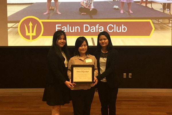 同日,大凤凰城地区规模最大高校亚利桑那州立大学(简称ASU)为该校法轮大法社团颁发了名为“杰出学生组织”的奖项。