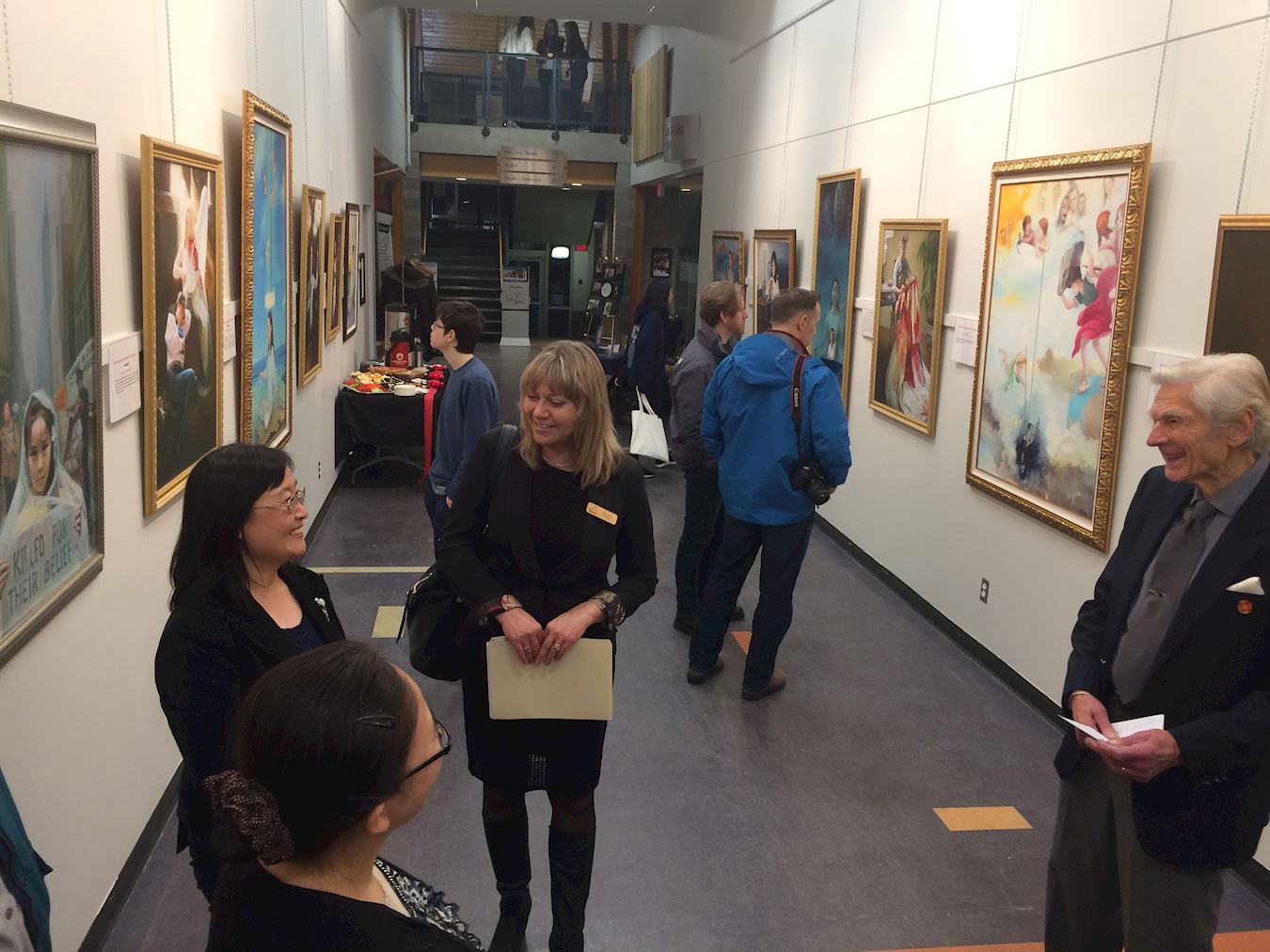 三月九日,市议员翠西·格雷代表市长和市政府向美展表示祝贺,并为美展的开幕剪彩。她说:“看到这么高质量的艺术作品在基洛纳展出,真是太棒了。”“我今晚看到的,听到的,让我非常感动。”她表示,要把美展的信息尽量传播出去,让更多人来看。