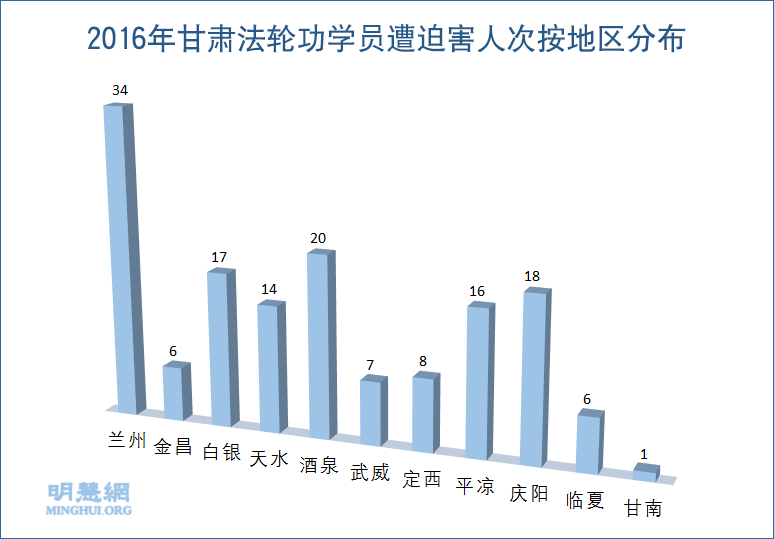 ![]() 图1:2016年甘肃法轮功学员遭受各类迫害人次统计 |