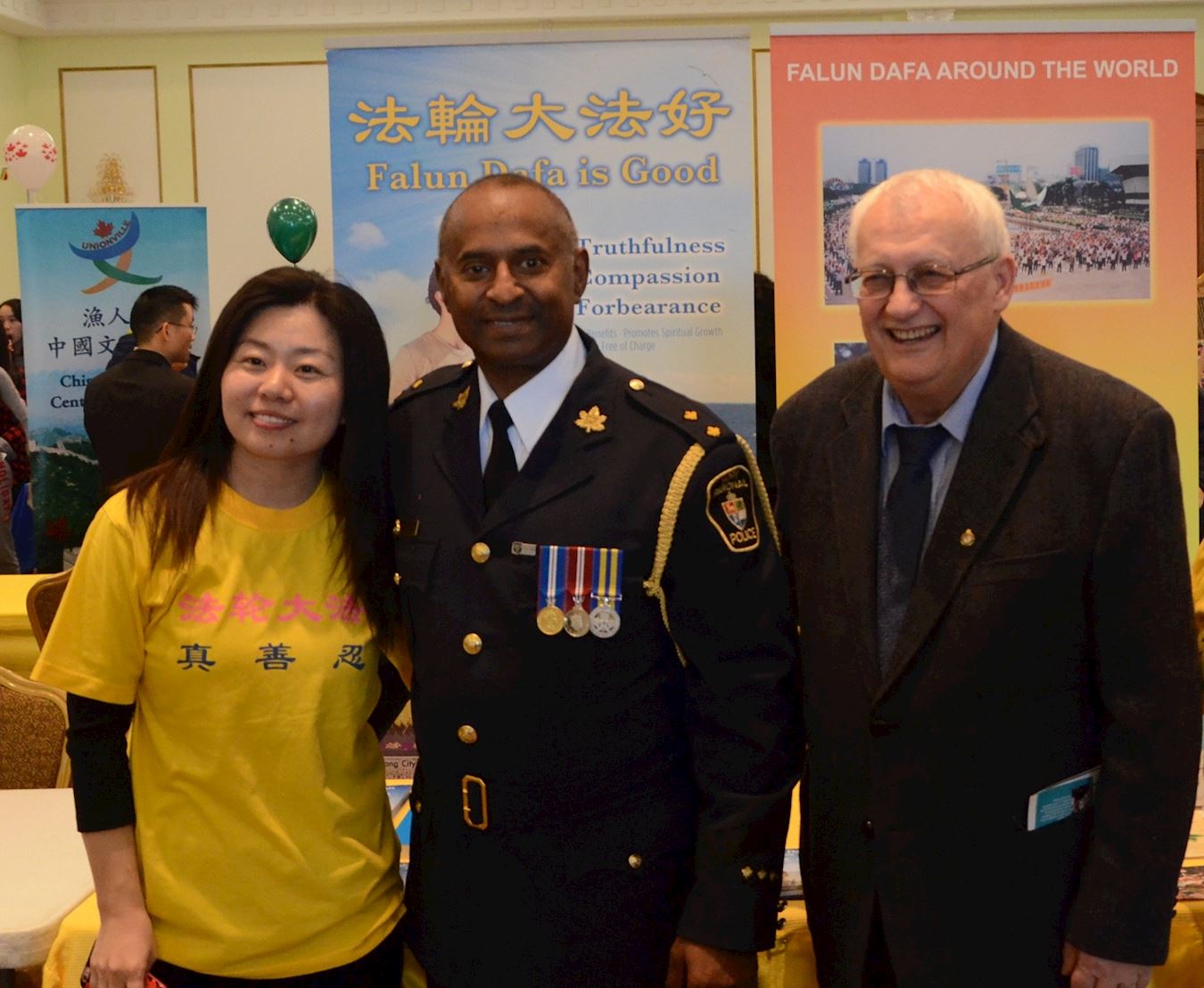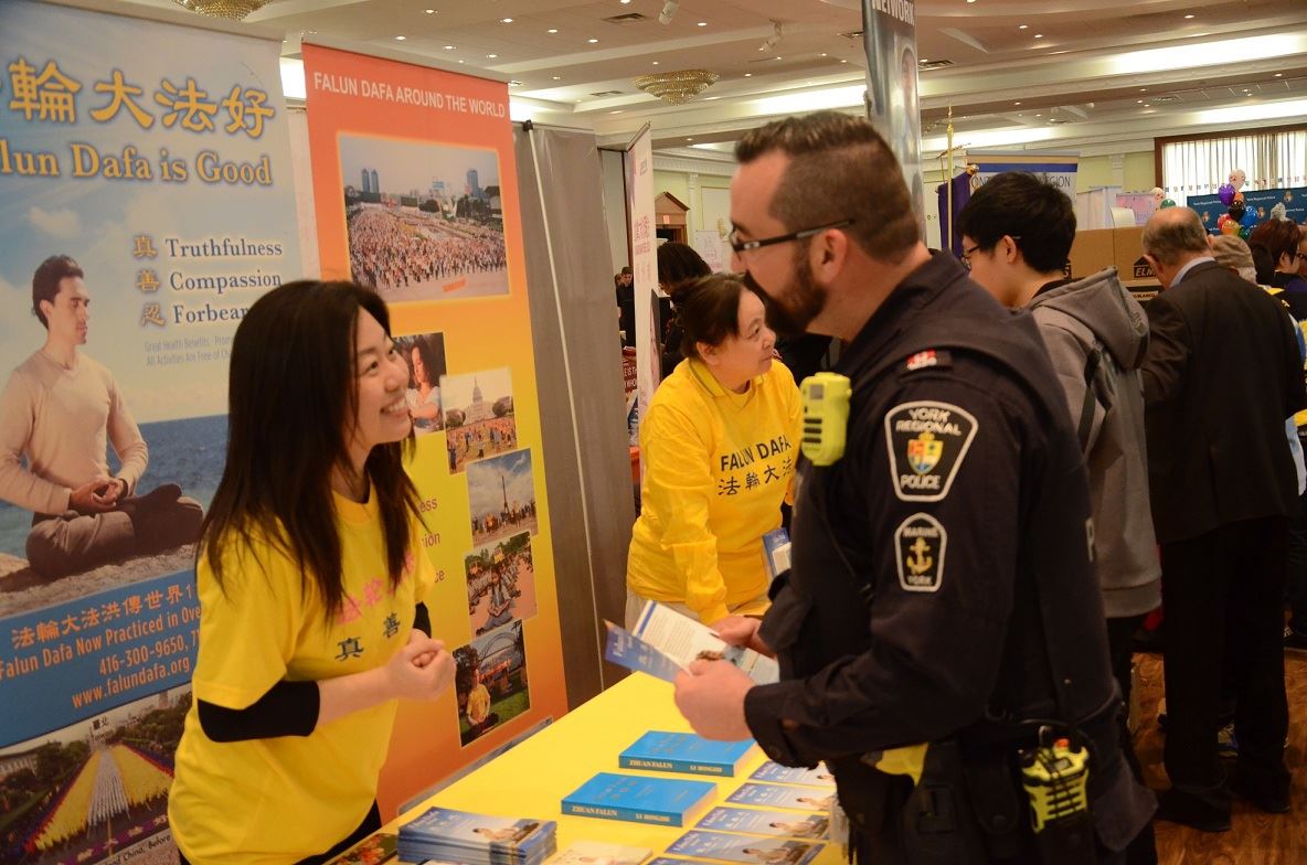 活动在传统的仪式中开始,约克区警察总长艾里克·乔里夫以及各级政府议员都前来支持本次活动,在活动大厅的门口,警官肯特(Kent)先生和法轮功学员攀谈起来,他说这已经是第十五年约克区警察局举办这样的活动了,他很高兴看到多年来法轮功学员在社区中的贡献,也非常欢迎法轮功学员。