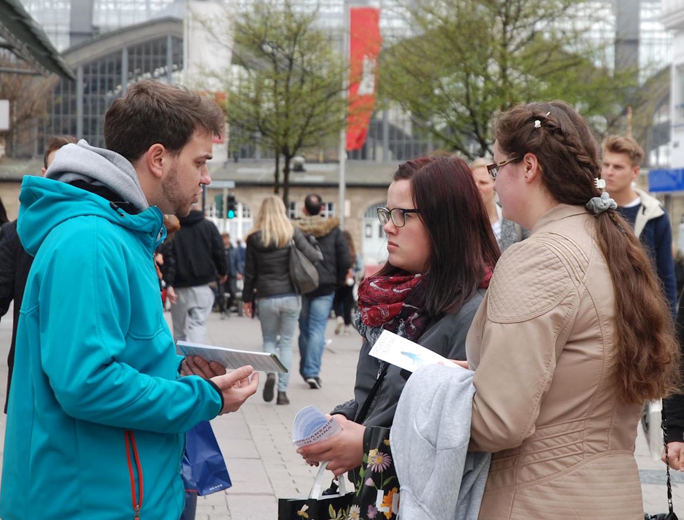 Eva和Regine六十开外,是土生土长的汉堡人。Eva盯着大横幅看了足足有15秒,说:“只有魔鬼才做得出这种事。”她第一次听说中共活摘器官的事。她的同伴Regine 去过中国旅游,她称赞法轮功学员揭露真相的努力,说“一定要制止这个迫害,每个人都应该来帮助,能做多少做多少。”