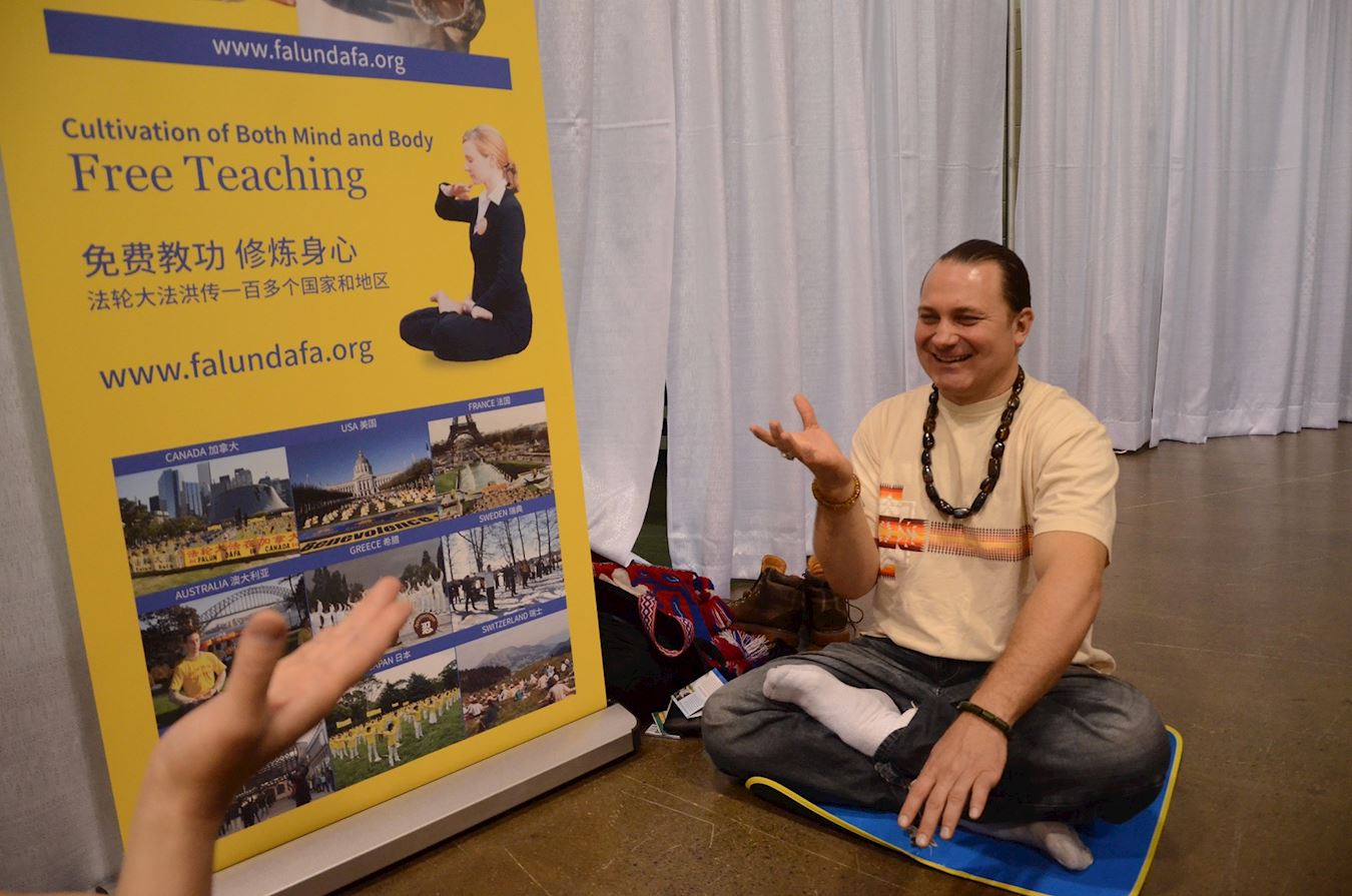 珠宝商乔纳森(Jonathan)先生来自加拿大西部的温哥华地区,他表示认同真、善、忍:“这是普世的准则。”他询问他所在地区有没有学员,学员向他展示了法轮大法网站上各地学员的炼功点,他高兴地告诉学员他找到了。在攀谈中他表示现在就想学功。乔纳森先生在学炼了法轮功的五套功法后表示:“这就是我想找的!”